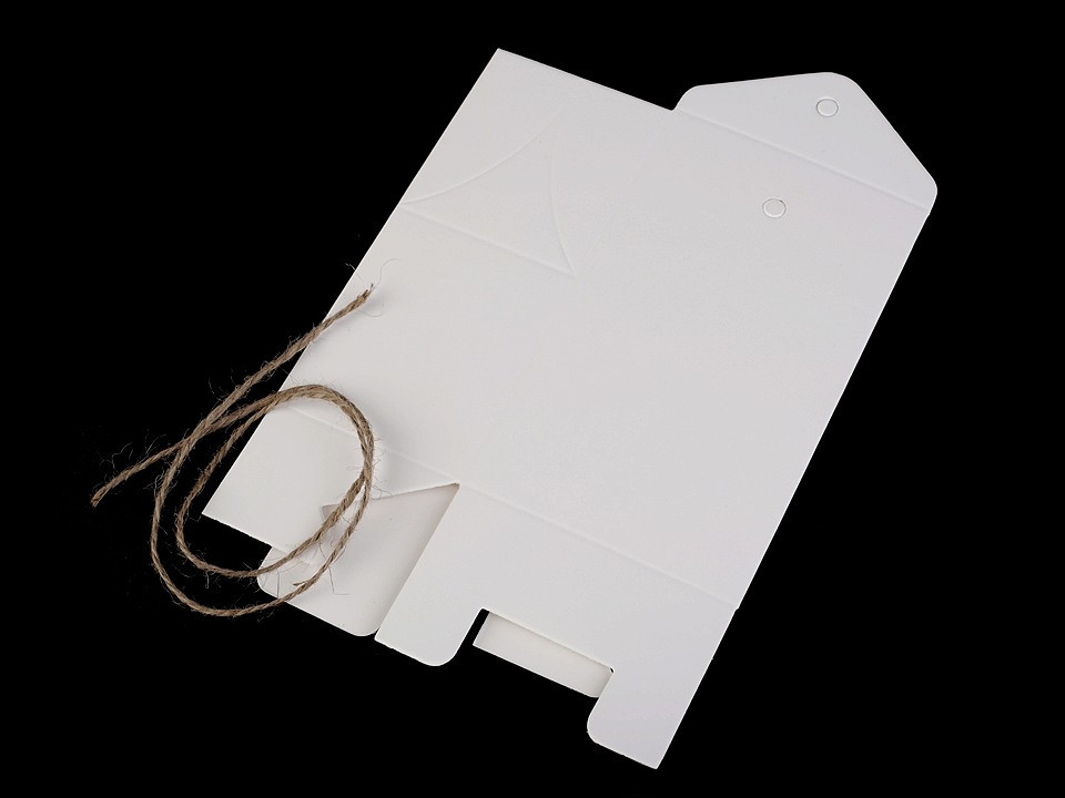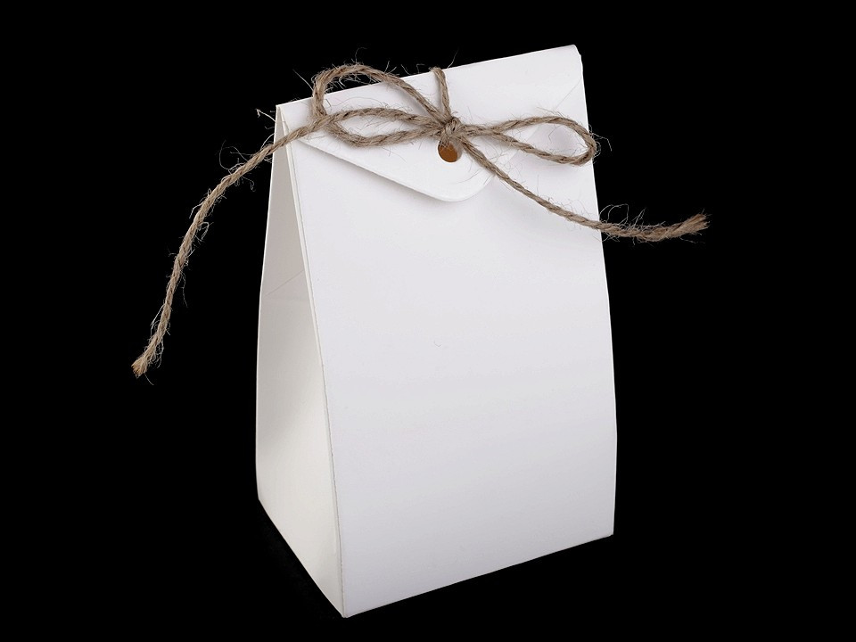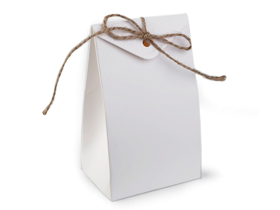 Papírová krabička je vhodná na zabalení menších dárků. Můžete ji pomalovat a dozdobit dle vlastního vkusu. Přírodní vzhled krabičky umocňuje jutový provázek. Krabička je vyrobená z pevného křídového papíru.