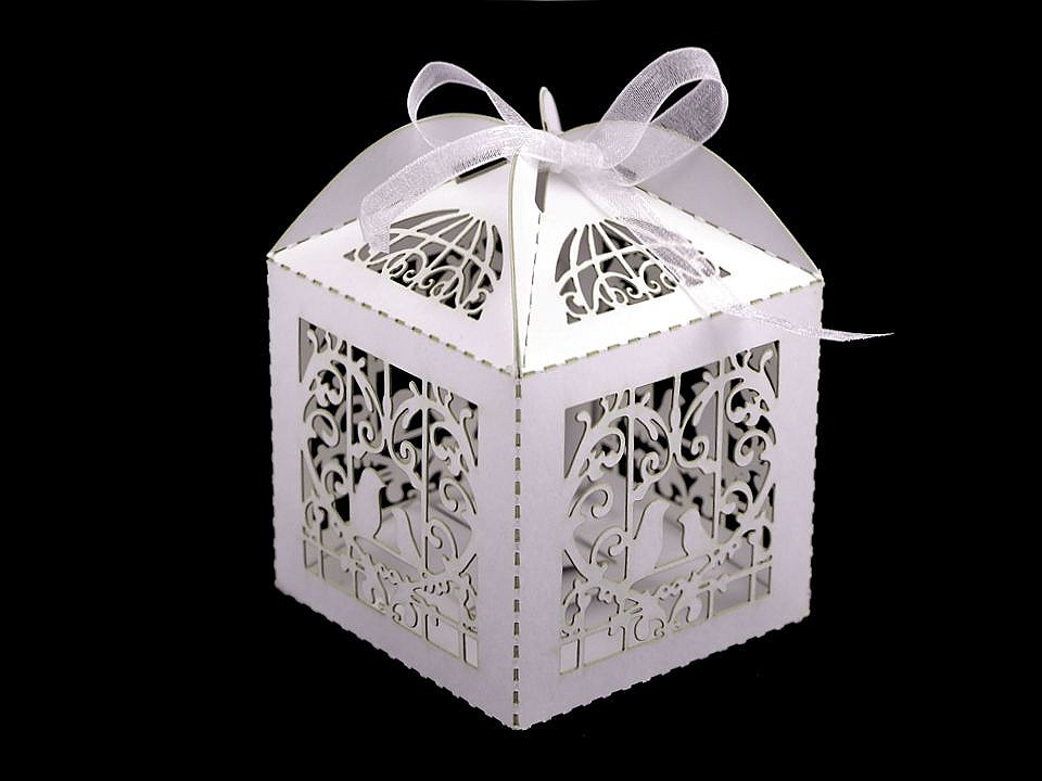 Papírové krabičky vám poslouží k uschování malých drobností a sladkostí pro svatební hosty (svatebních mandlí, pralinek, luxusních čokoládek, bonbonů apod.). Pokud je položíte na slavnostní stůl a vložíte do ní elektronickou svíčku, vytvoříte zároveň i krásnou dekoraci.
