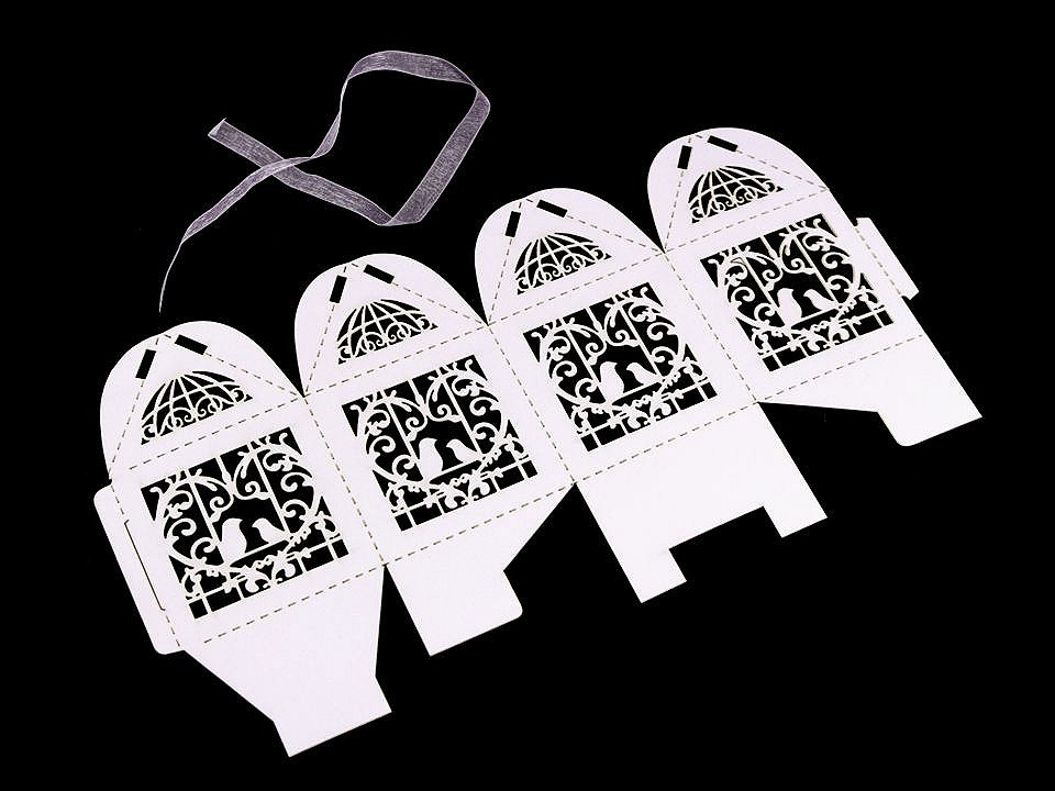 Krabičku dodáváme v rozloženém stavu (13,8 x 24,5 cm). Složíte ji jednoduše podle vyznačených ohýbacích krajů. Součástí balení je monofilová stuha, kterou krabičku zavážete.