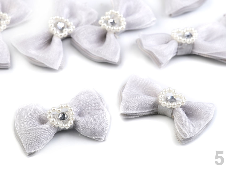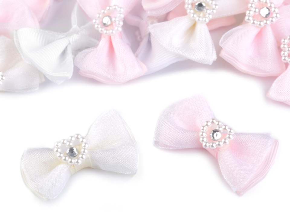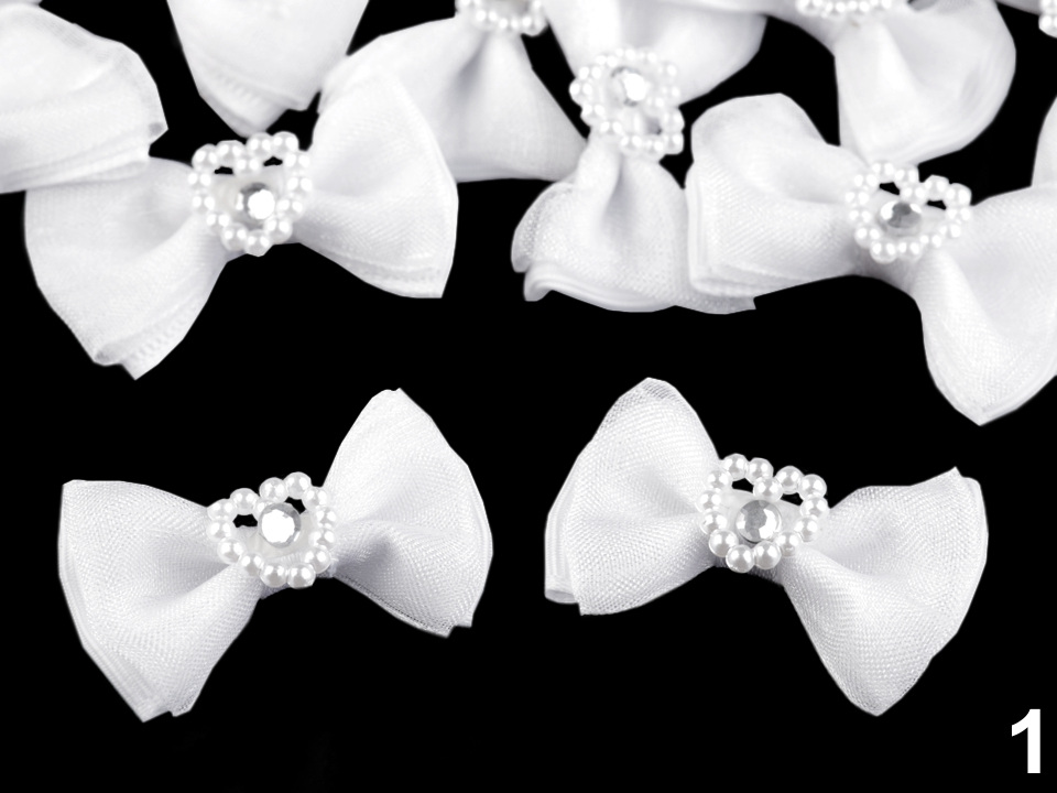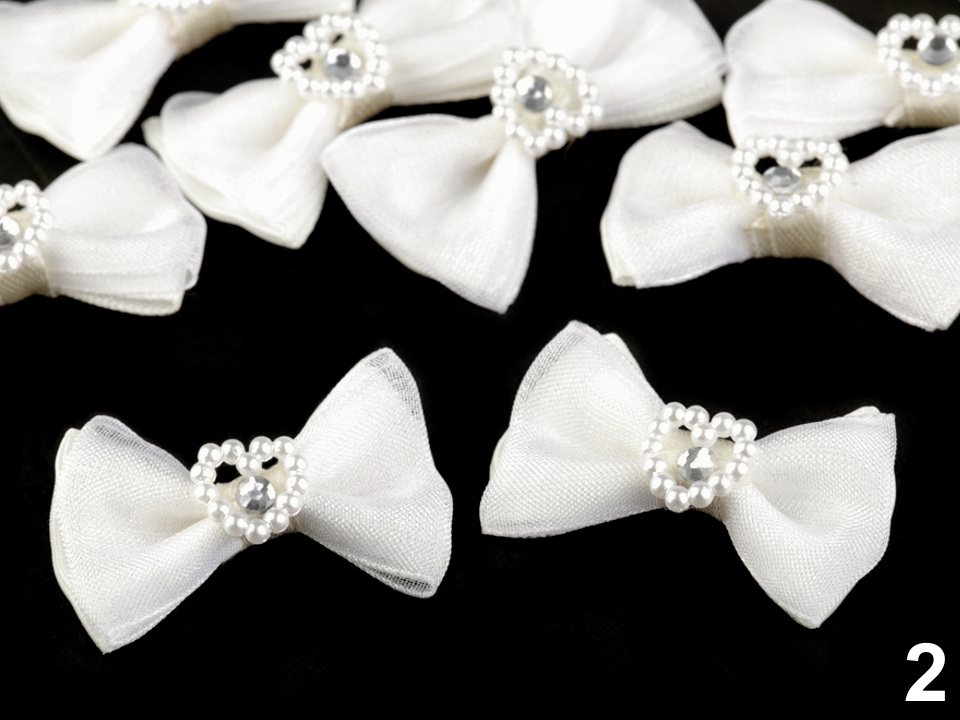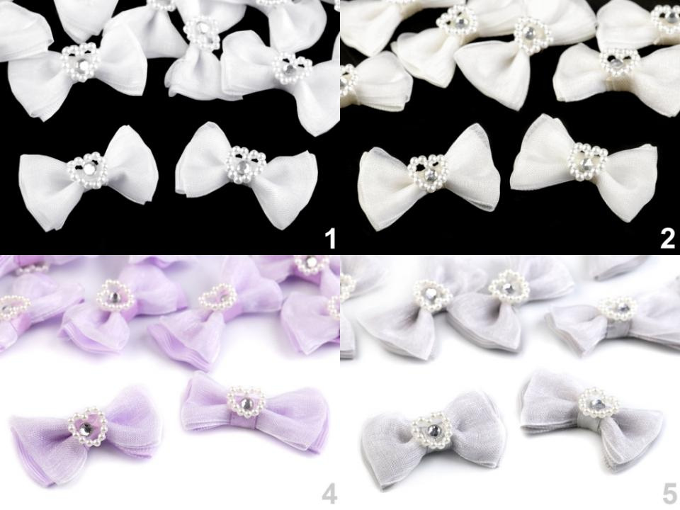 Ozdobná mašle má uprostřed perličkové srdce s broušeným kamínkem.