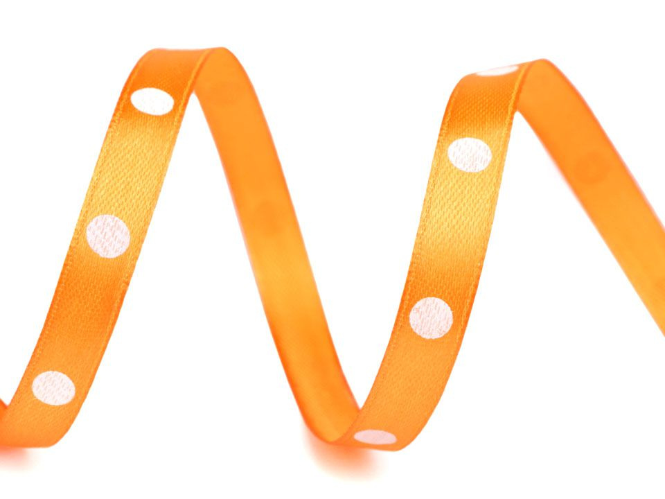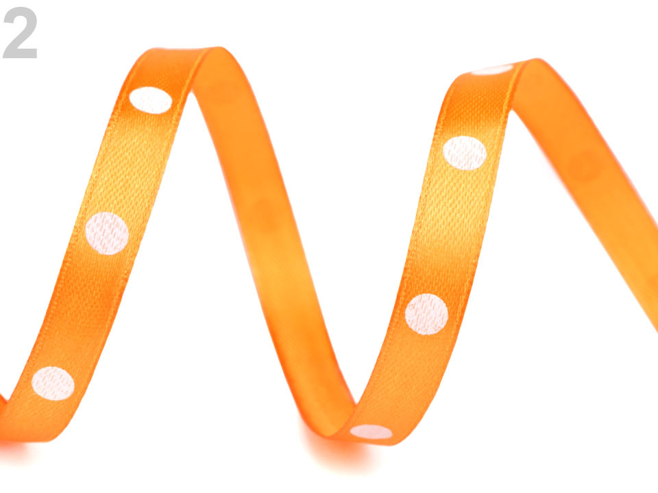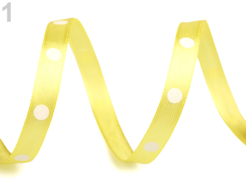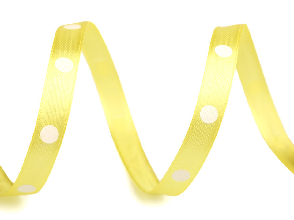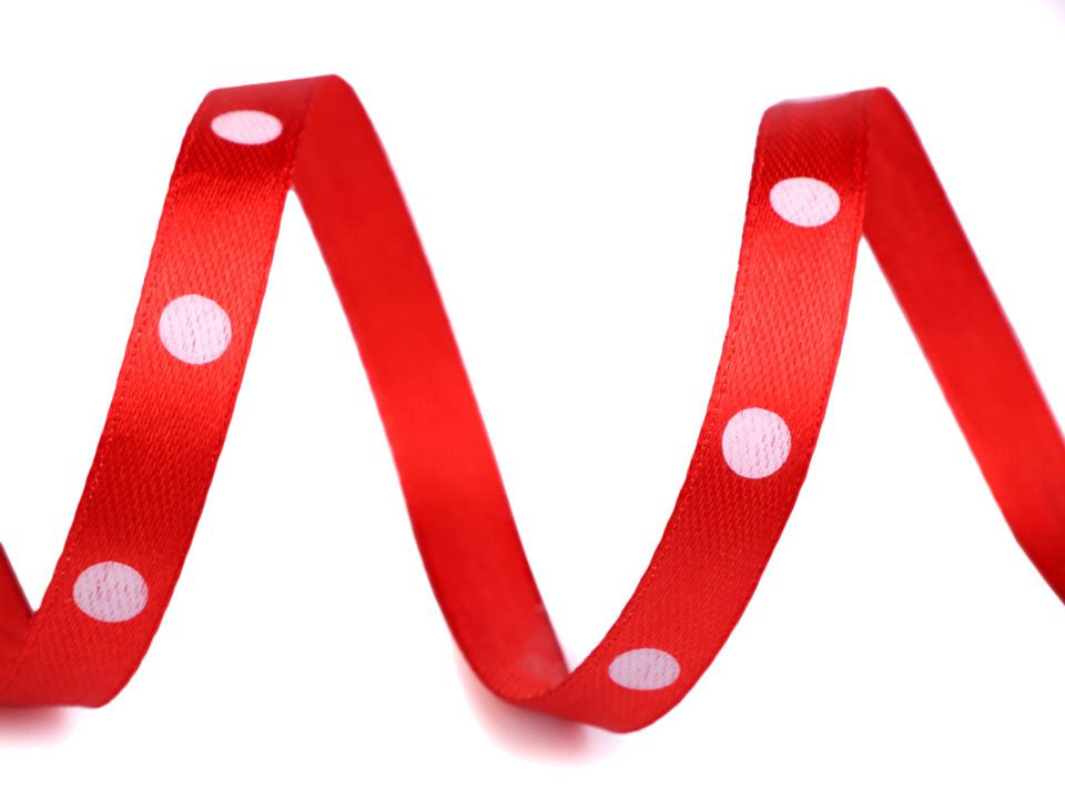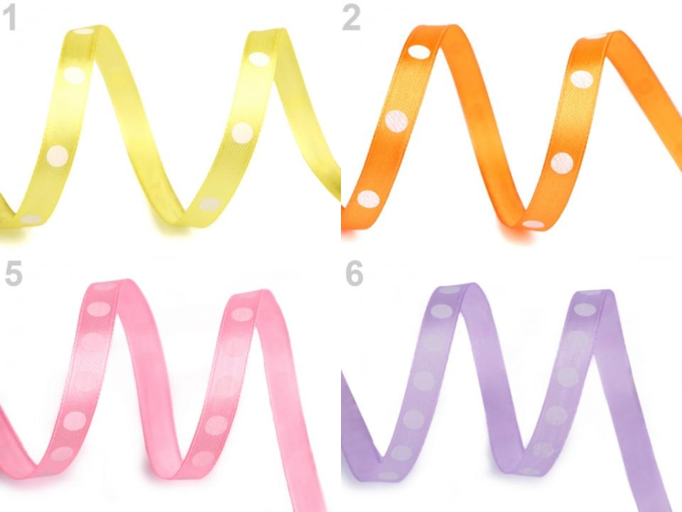 Saténovou stuhu zdobí potisk puntíků, který snad nikdy nevyjde z módy.