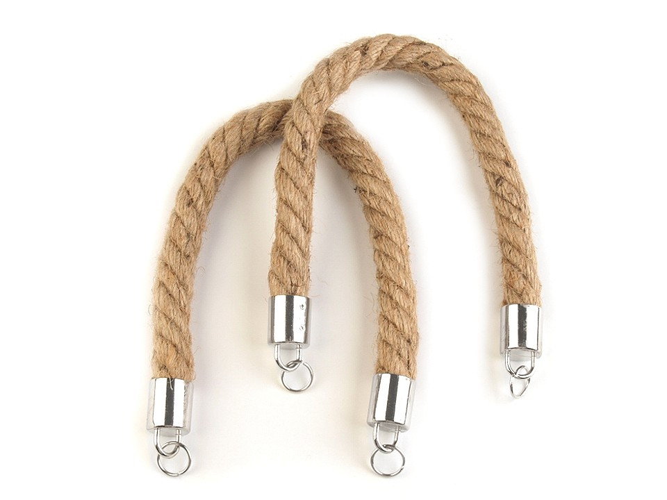Pevná splétaná ucha na tašky jsou vyrobena z přírodního sisalu.