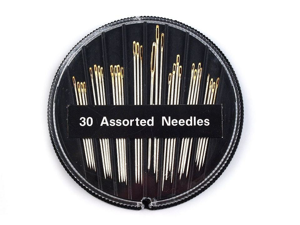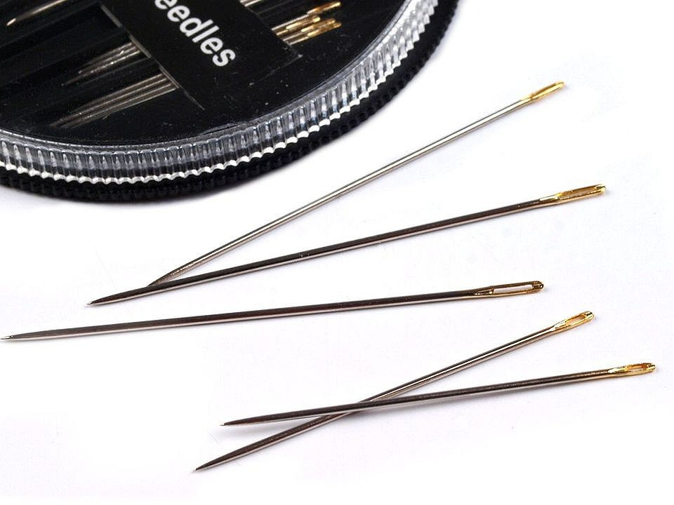 Kompaktní balení jehel různých velikostí. Jedna krabička obsahuje 30 jehel, v originálním balení je 5 ks krabiček. Navíc doma nemusíte mít ani jehelníček, plastová krabička je ideální úschovnou. Jehly mají zlatá očka pro snadné navlečení nitě i bez navlékače.