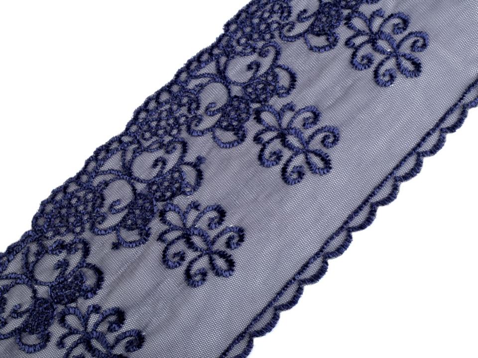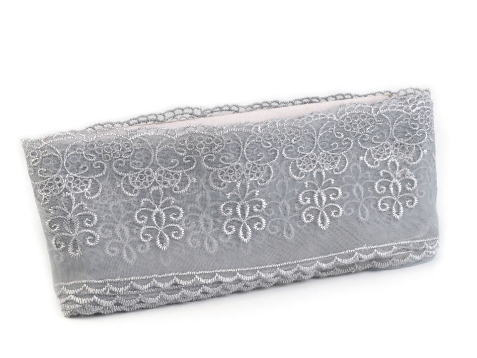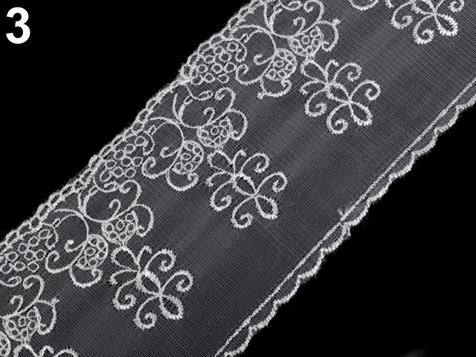 Jemná krajka na monofilu působí díky zajímavé výšivce velmi elegantně.
