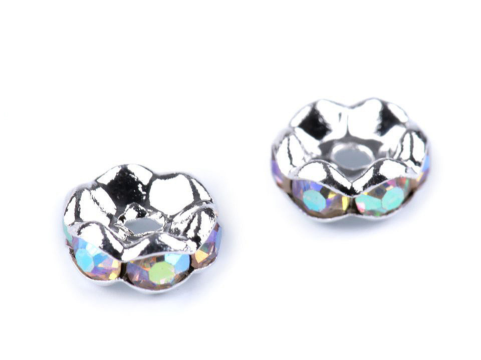 Šatonová rondelka je kovový kroužek, který je po obvodu ozdobený broušenými kamínky. Můžete ji zakomponovat mezi jiné korálky např. do náramků, náhrdelníků, náušnic nebo třeba hodinek. Můžete ji použít i samostatně. Vypadá luxusně v kombinaci s voskovanými perlami. Díky rondelce se budou vaše šperky jiskřivě třpytit.