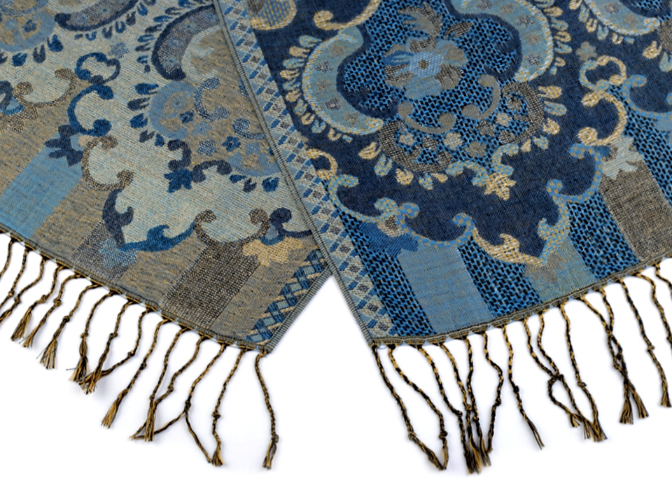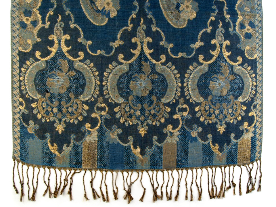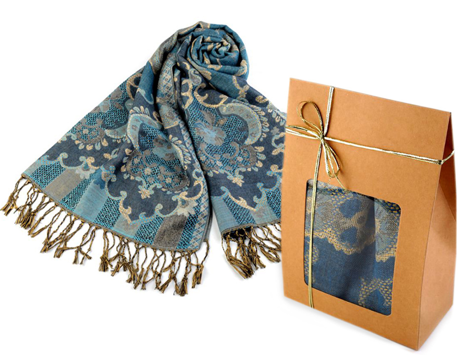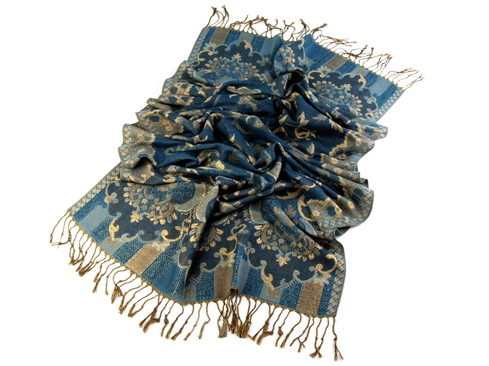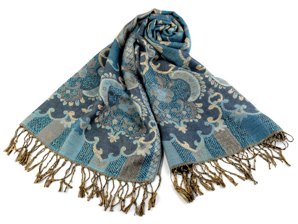 Dámská společenská šála s kašmírovým květinovým dekorem. Vzor na šále je luxusní kombinací matu a lesku díky přidaných lurexových vláken. Šála je vhodná na sako či kabát v sychravějších dnech. Můžete ji nosit do práce i do společnosti, její elegantní vzhled váš outfit dokonale dozdobí.