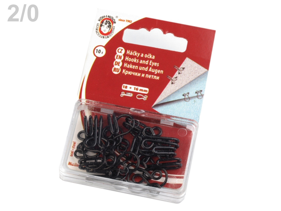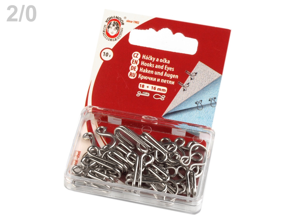 Velikost 2/0: délka očka 16 mm, délka háčku 18 mm
