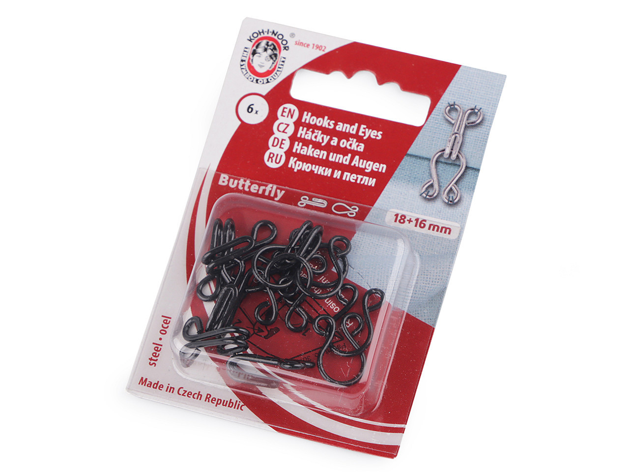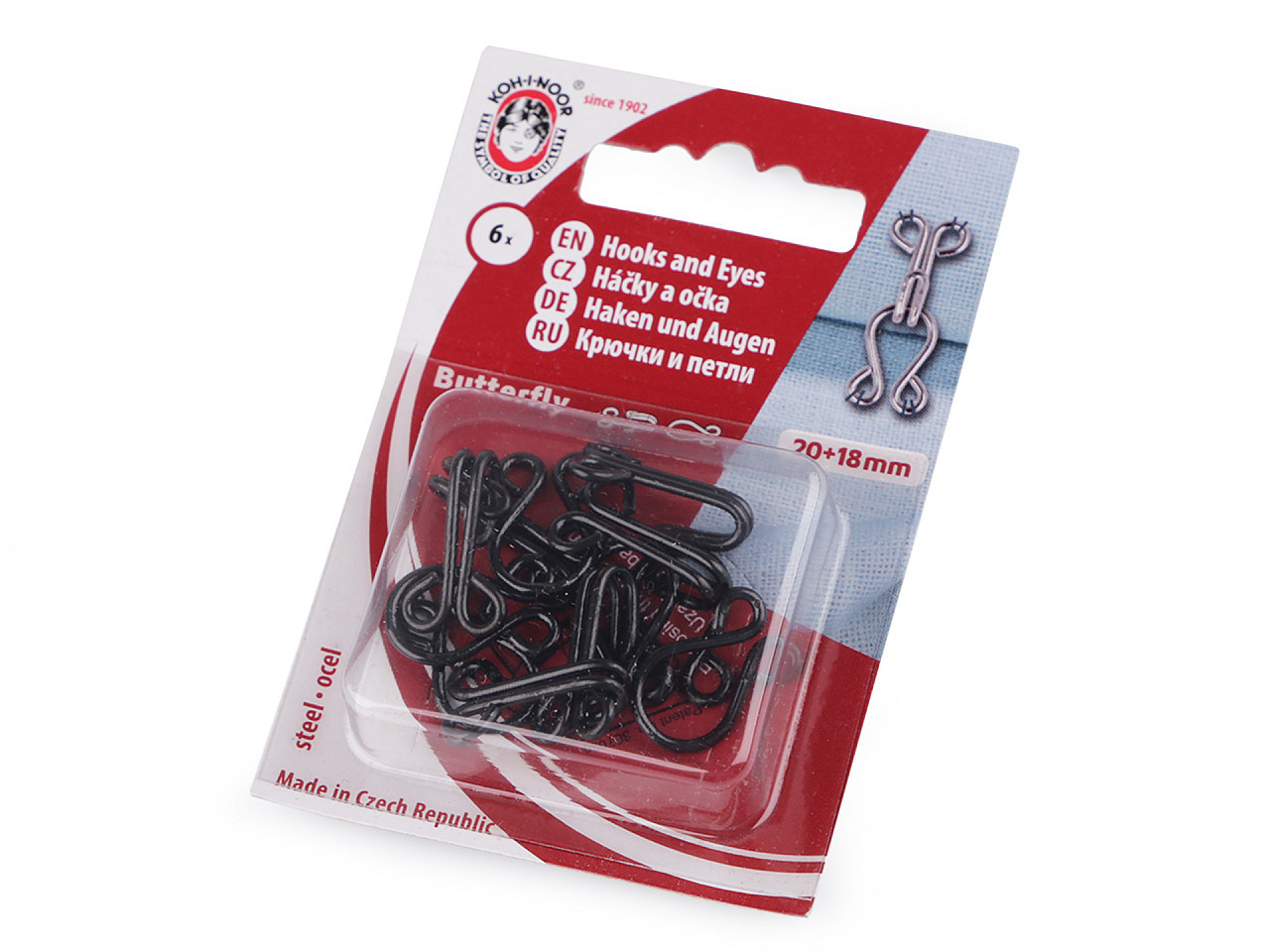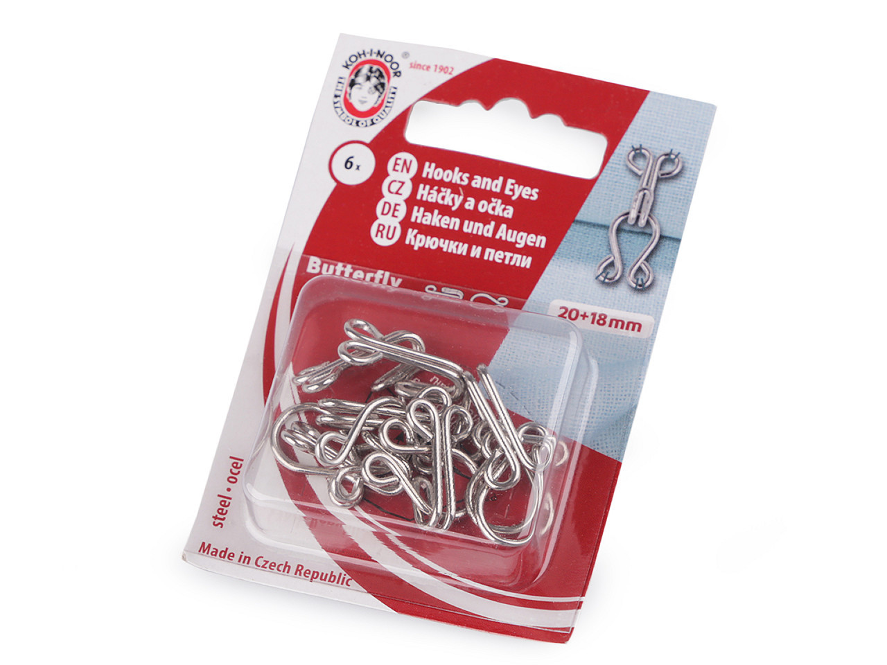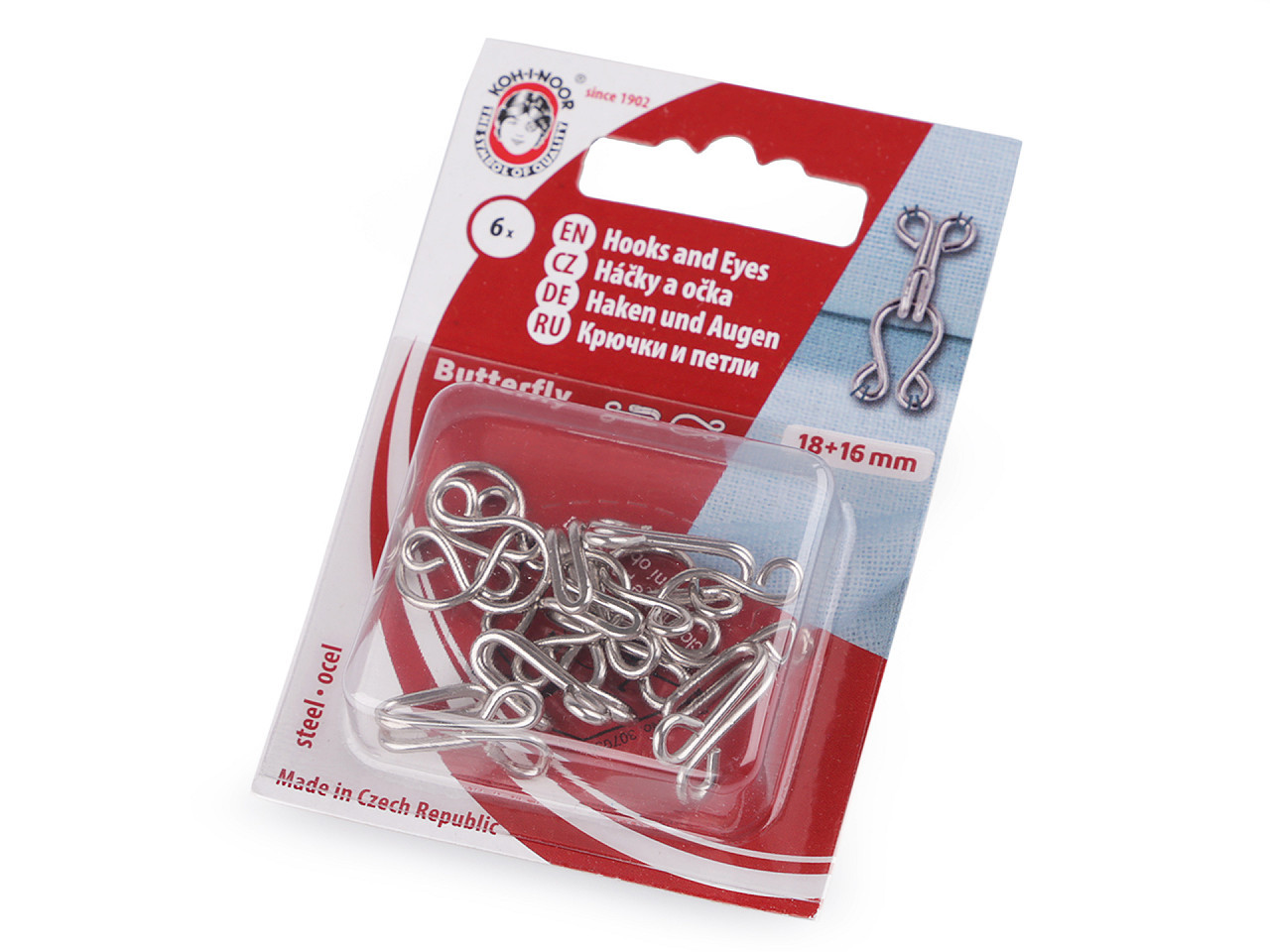 Zapínání na háček a očko je vyrobeno z magnetizujícího kovu. Používá se na oděvy a připevňuje se přišitím. Jedná se o kvalitní český výrobek.