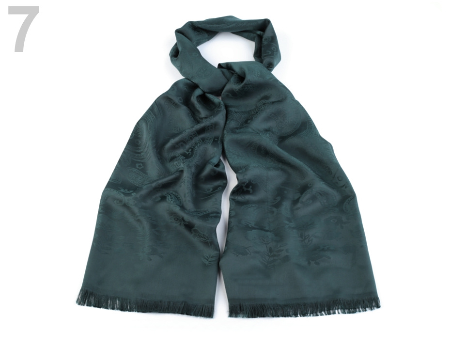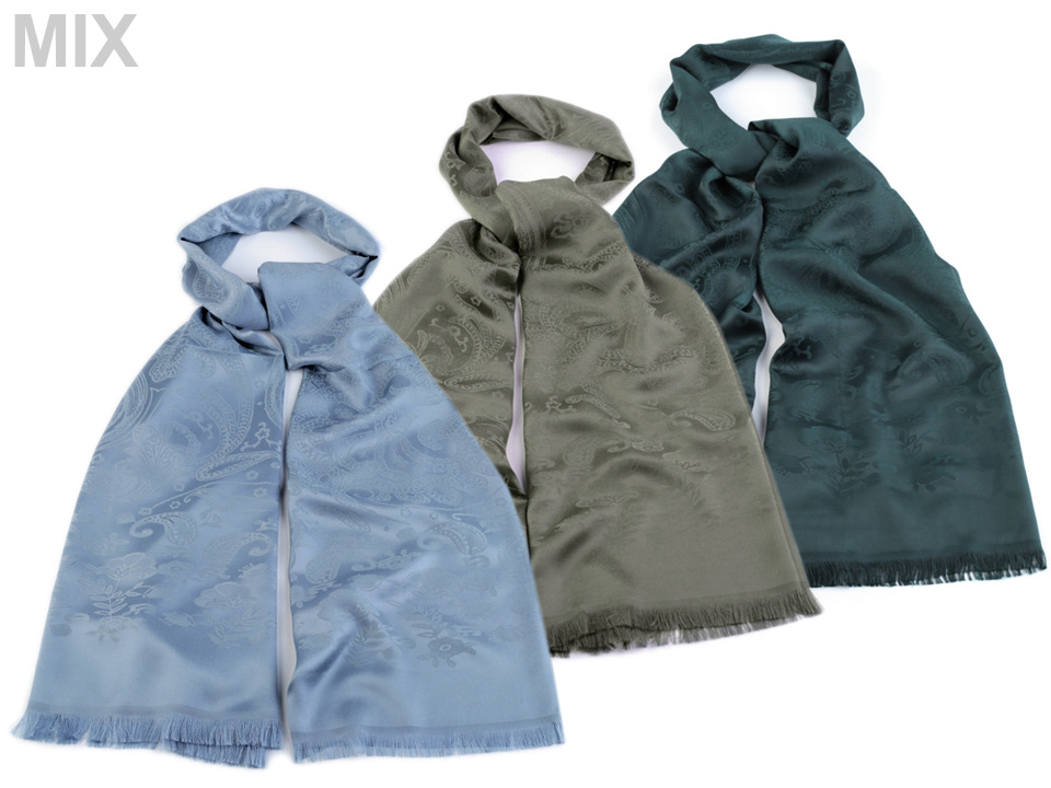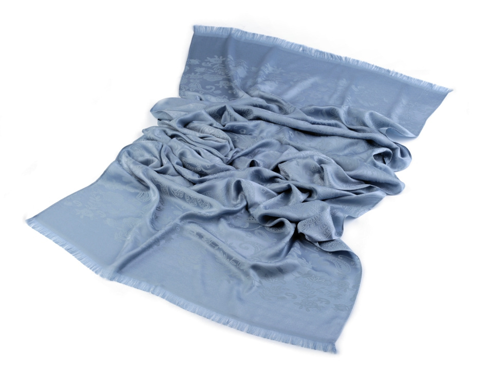 Velká dámská šála je univerzálním módním doplňkem. Má jemný lesk, zdobí ji nenápadný kašmírový vzor. Můžete ji nosit do práce i do společnosti, její elegantní vzhled váš outfit dokonale doladí. Využijete ji celoročně.