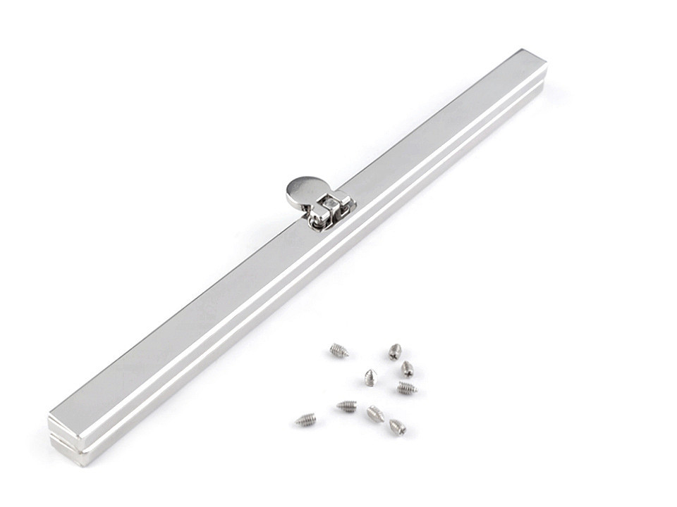 Kovový rámeček využijete na výrobu kabelek. Jedná se o vkládací typ rámečku, kdy se látka vloží dovnitř, zpevní přibalenými šroubky (8 ks) nebo lepidlem (doporučujeme chemoprénový typ lepidla) a kleštěmi se čelisti rámečku stáhnou k sobě.
