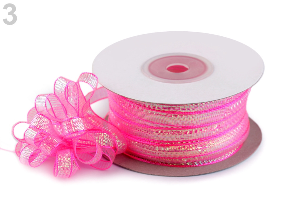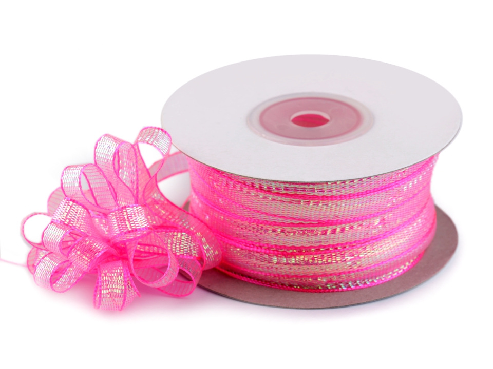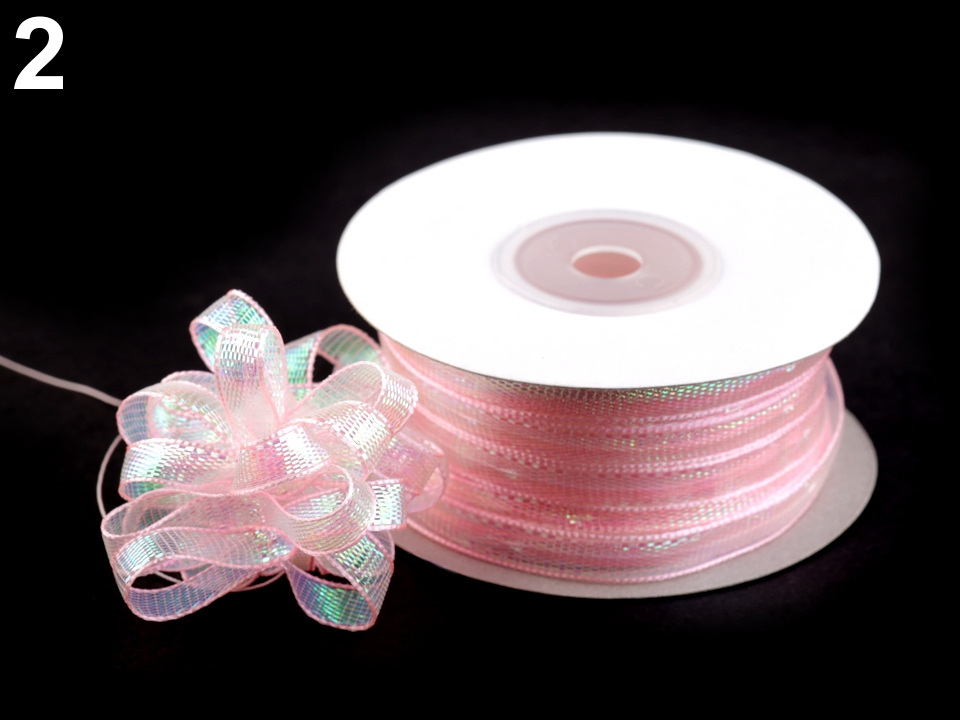 Jemná lesklá stuha je svým zpracováním velmi originální. Její kouzlo spočívá v tom, že ji jednoduše zatáhnete za šňůrku ze spodní strany a ihned se vám vytvoří efektní mašle.