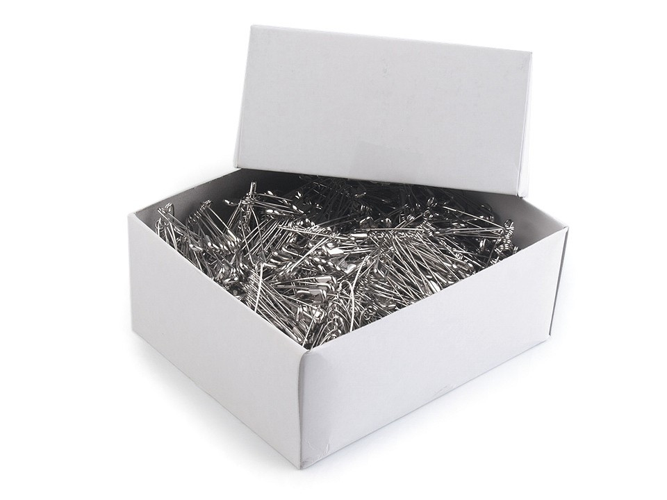 Špendlíky jsou baleny po 100 svazcích v papírové krabičce. Na každém svazku je 10 ks špendlíků.