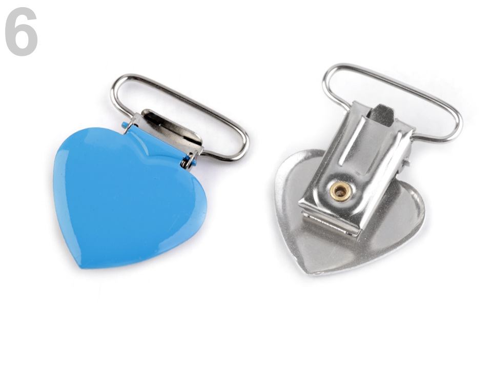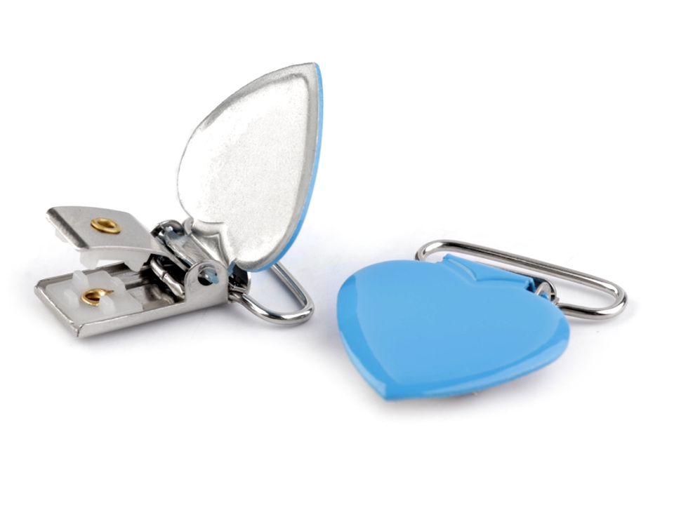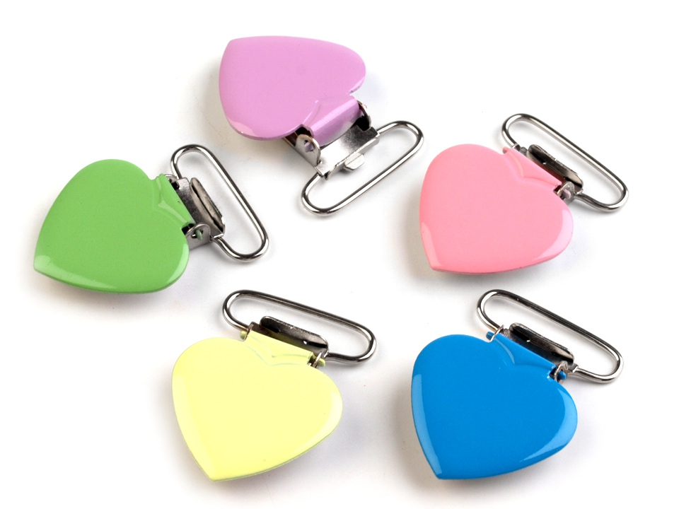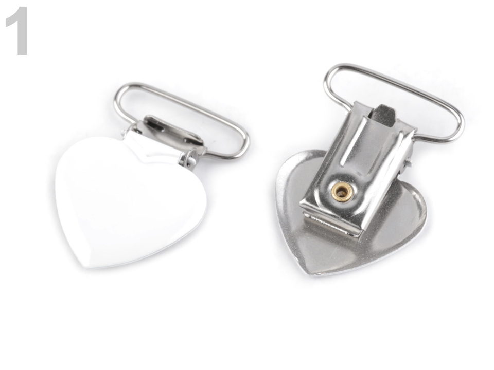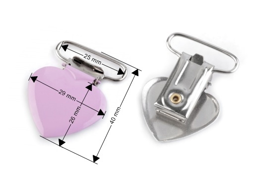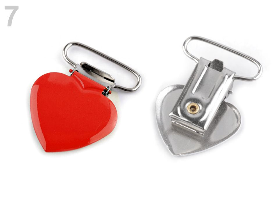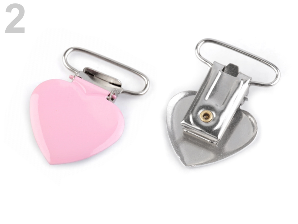Kovový šlový závěs působí díky srdíčku, které je na něm vyobrazeno, roztomile. Oživí každé šle. Tento typ závěsu obsahuje bílé plastové vložky se zoubky, které drží mnohem lépe než typy bez plastových vložek.