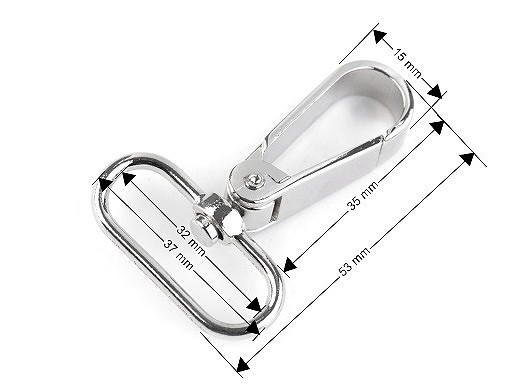 Kovovou karabinu využijete na upevnění popruhů ke sportovním taškám a kabelkám. Můžete ji použít také na výrobu vodítek pro psy. Je otočná.