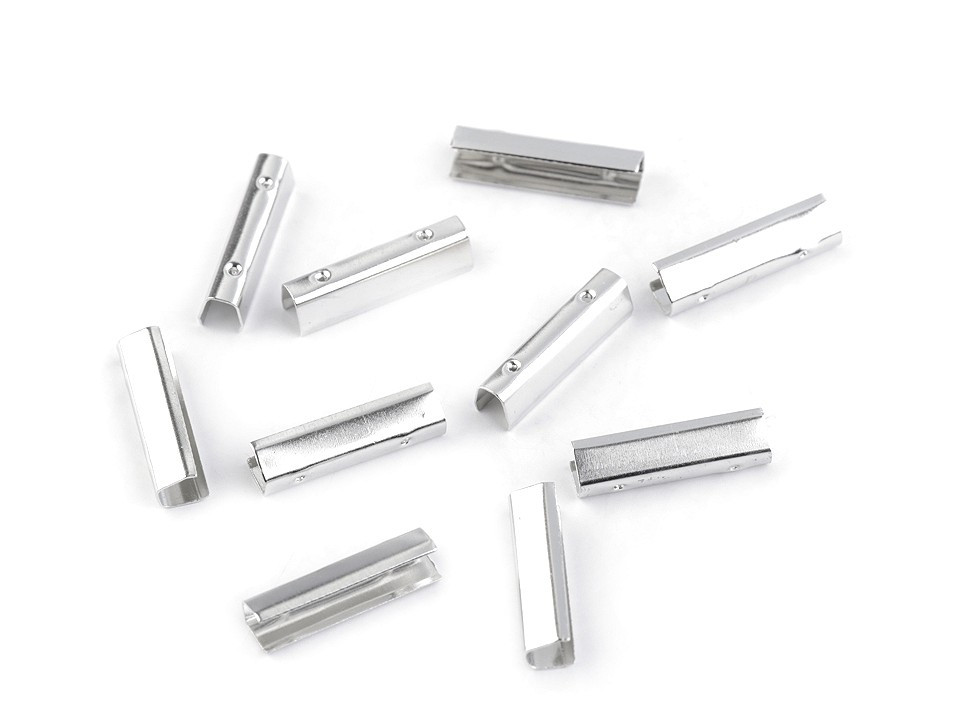 Kovová koncovka se používá na ukončení různých šňůrek nebo na výrobu vlasových gumiček. Můžete s ní spojit jednu gumičku nebo svazek složený z tenkých gumiček. Šňůrku nebo gumičku vložte dovnitř a kleštěmi komponent zamáčkněte. Pro větší pevnost doporučujeme dovnitř zakápnout lepidlo. Koncovku na gumičkách můžete schovat, stačí na ní nalepit ozdobnou mašličku, květ, velkoprůvlekový korálek apod.