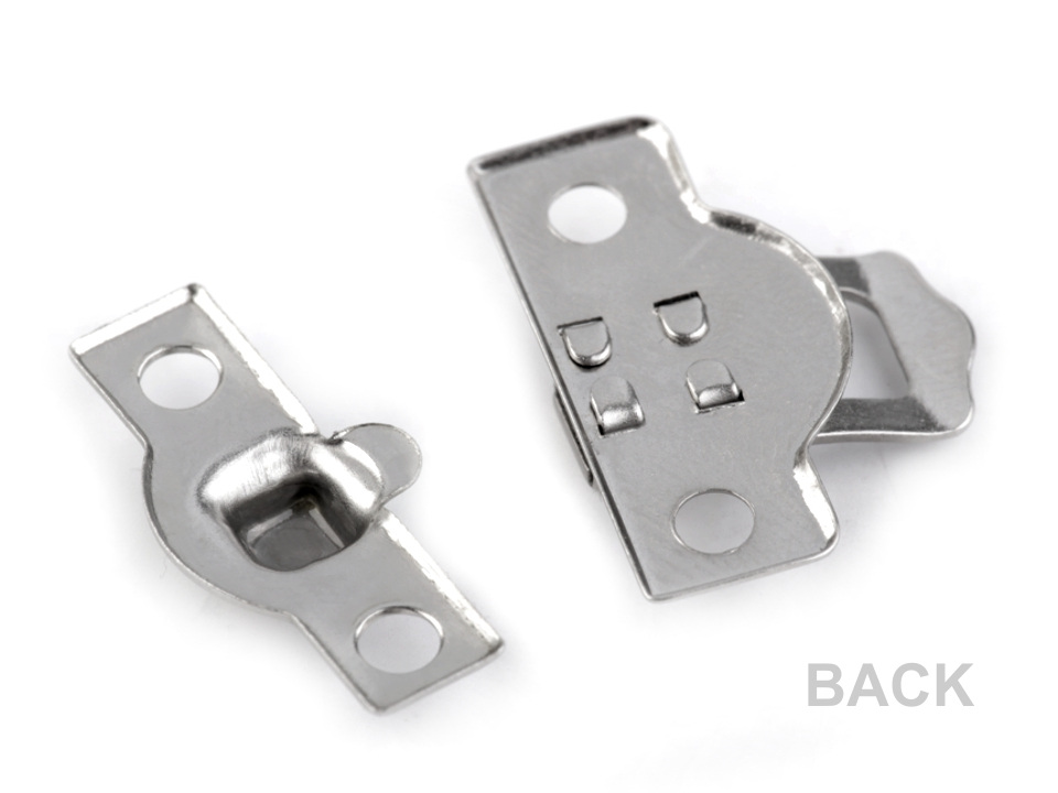 Kovový uzávěr využijete ke dřevěným i kartonovým krabičkám, kufrům nebo deníkům. Skládá se ze dvou částí, které přišroubujete ke krabici.