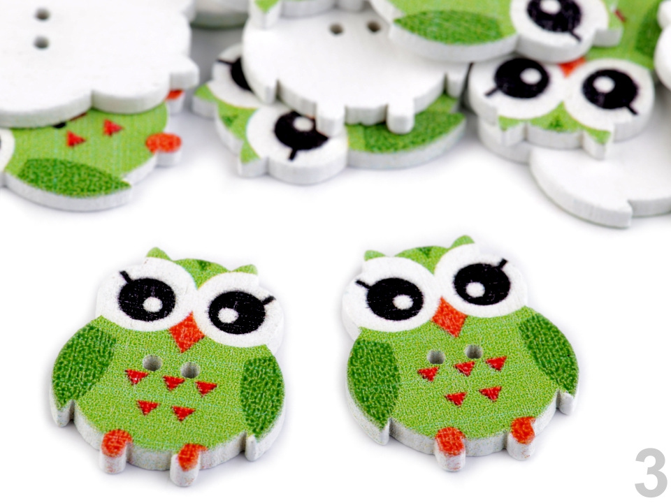 Roztomilé dřevěné knoflíky se sovičkou si zamilují děti, ale také dospělí, kteří se věnují srapbookingu. Můžete s nimi ozdobit tašky, pytlíky, kapsáře, foto rámečky, deníky, pozvánky apod. Knoflíky jsou baleny v sáčku.
