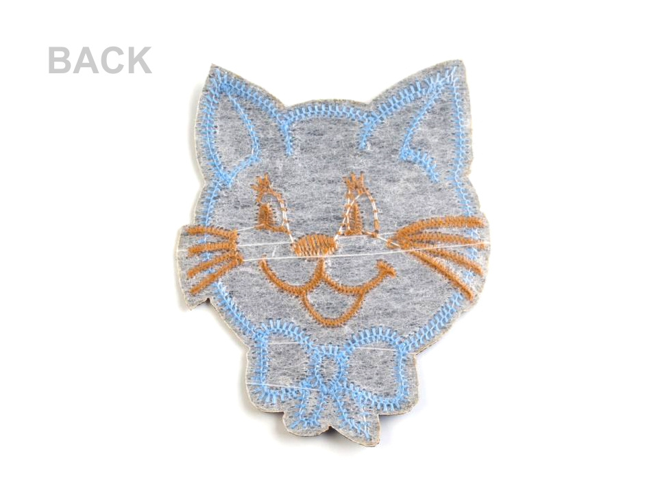 Nažehlovačka s roztomilou kočkou potěší malé i větší děti. Její velikost je vhodná k záplatování kolen dětských kalhot,