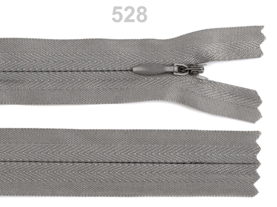 Nedělitelný spirálový zip je díky zakrytí spirály po našití prakticky neviditelný.