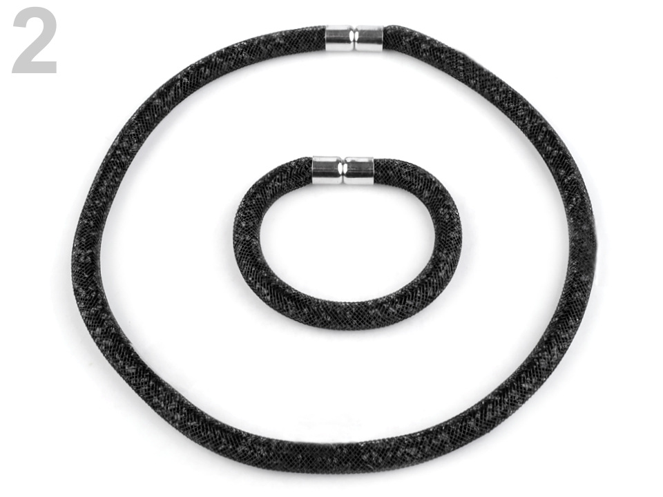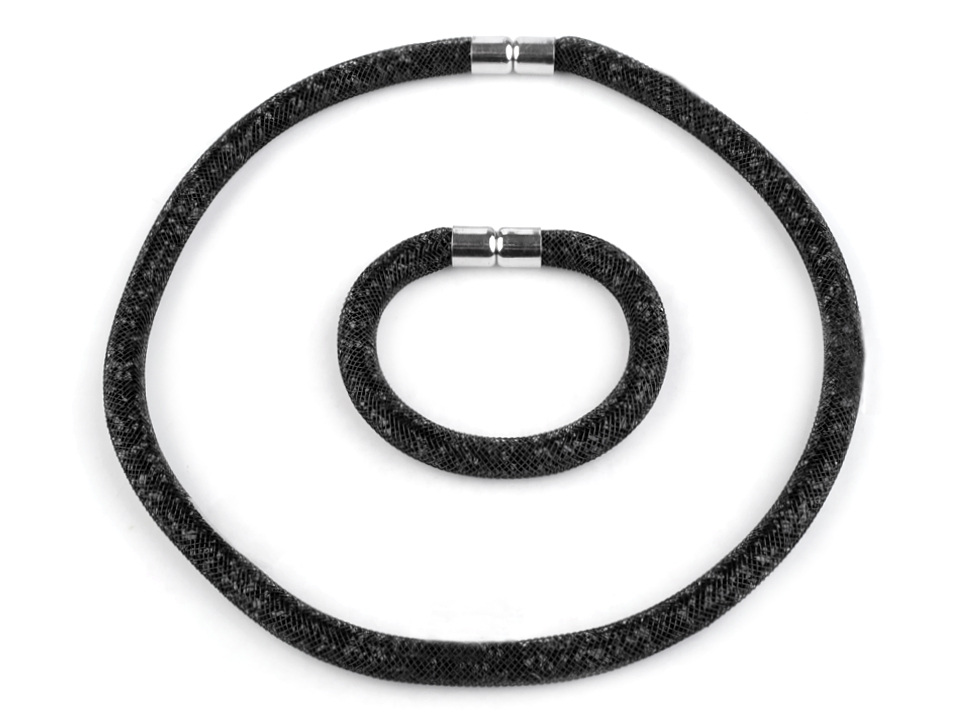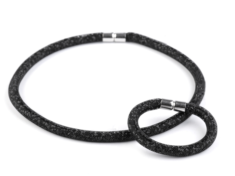 lehké a mají oslnivý třpyt. Důmyslné zapínání náhrdelníku i náramku je na pevný magnet.