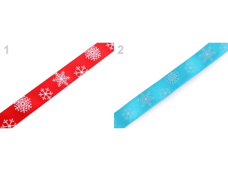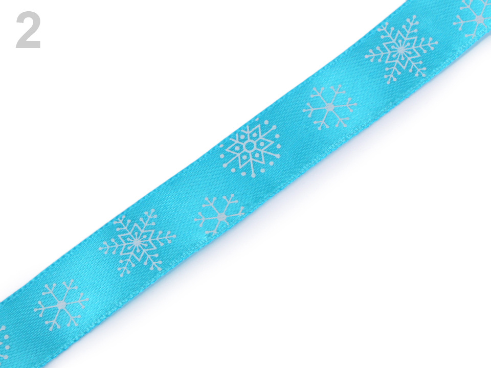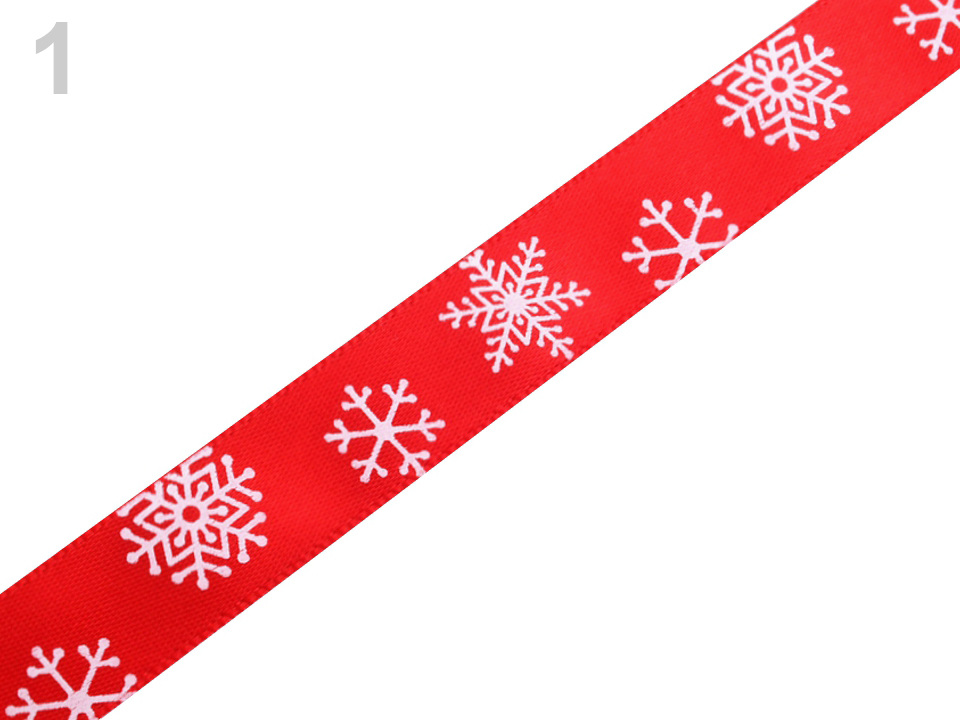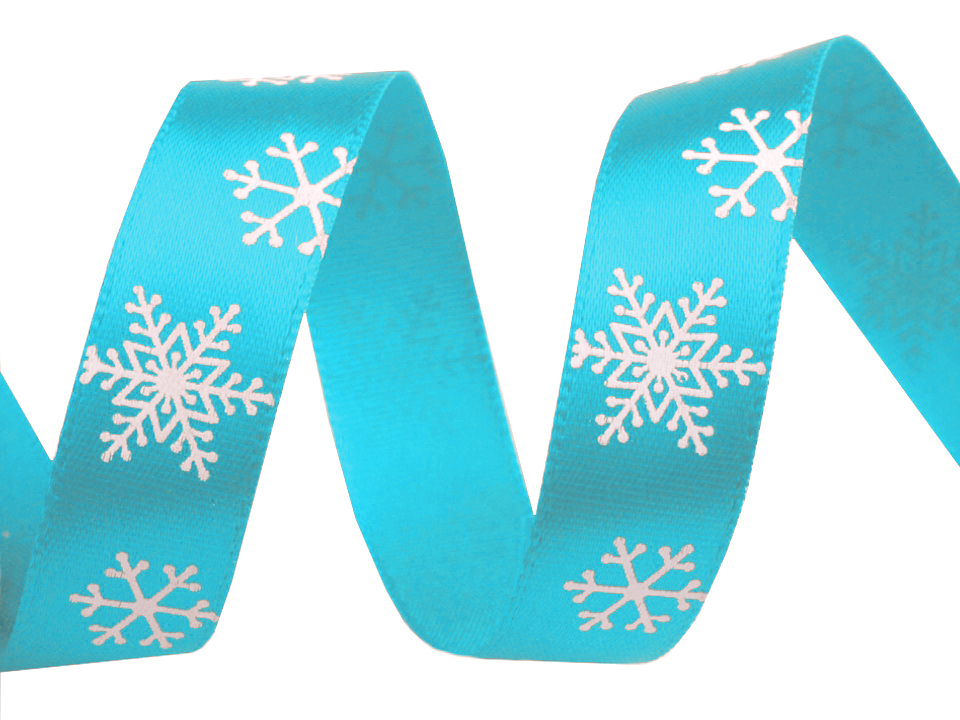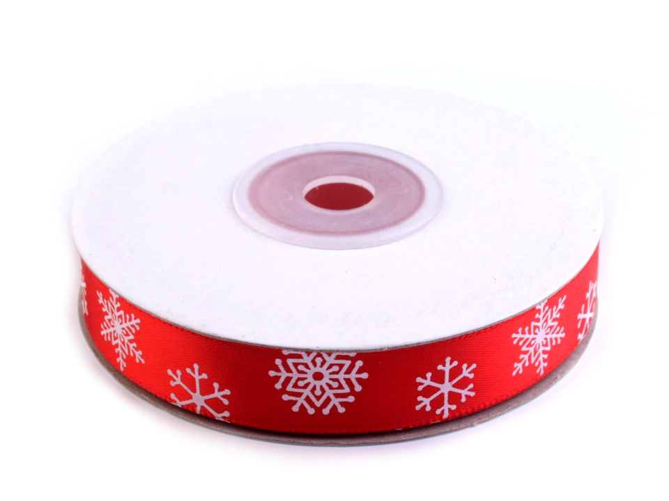 Lesklou atlasovou stuhu zdobí zimní potisk vloček, který je jednostranný.