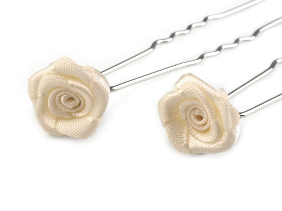 Elegantní vlásenky se saténovou růžičkou ozdobí váš účes především do společnosti. Využijete je i k letním šatům, růžičky vlasy romanticky dozdobí. Vynikají kvalitou použitého materiálu.