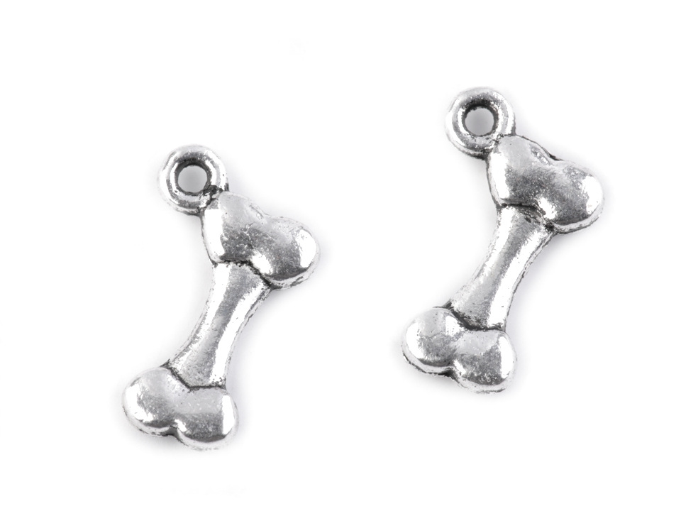Přívěsek ve tvaru kosti je vhodný na výrobu šperků i k našití na oděvy. Díky jeho malé velikosti se hodí