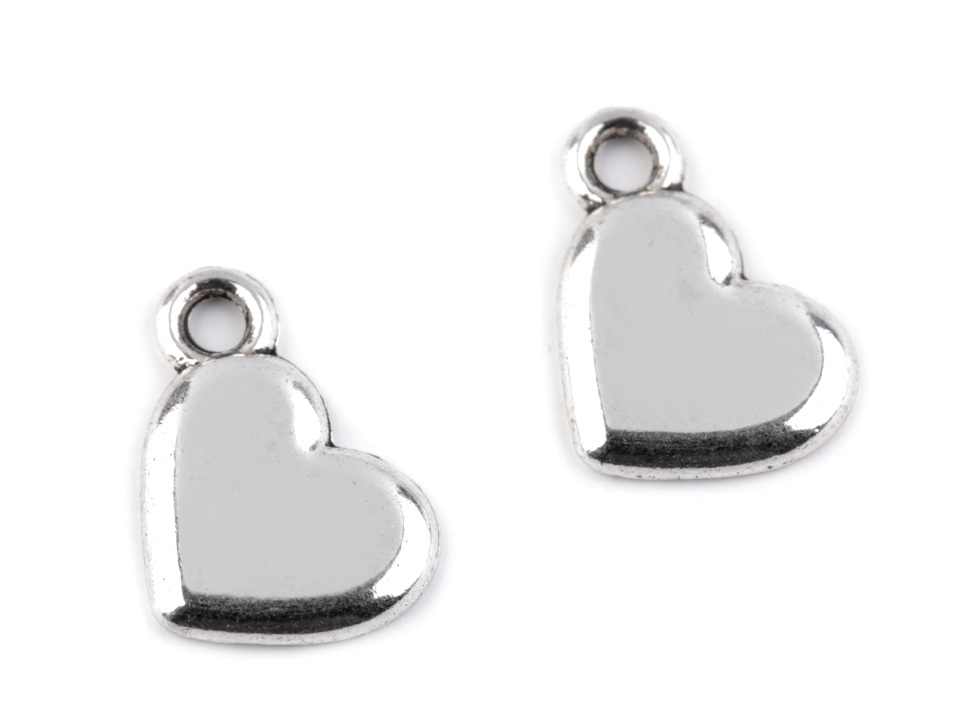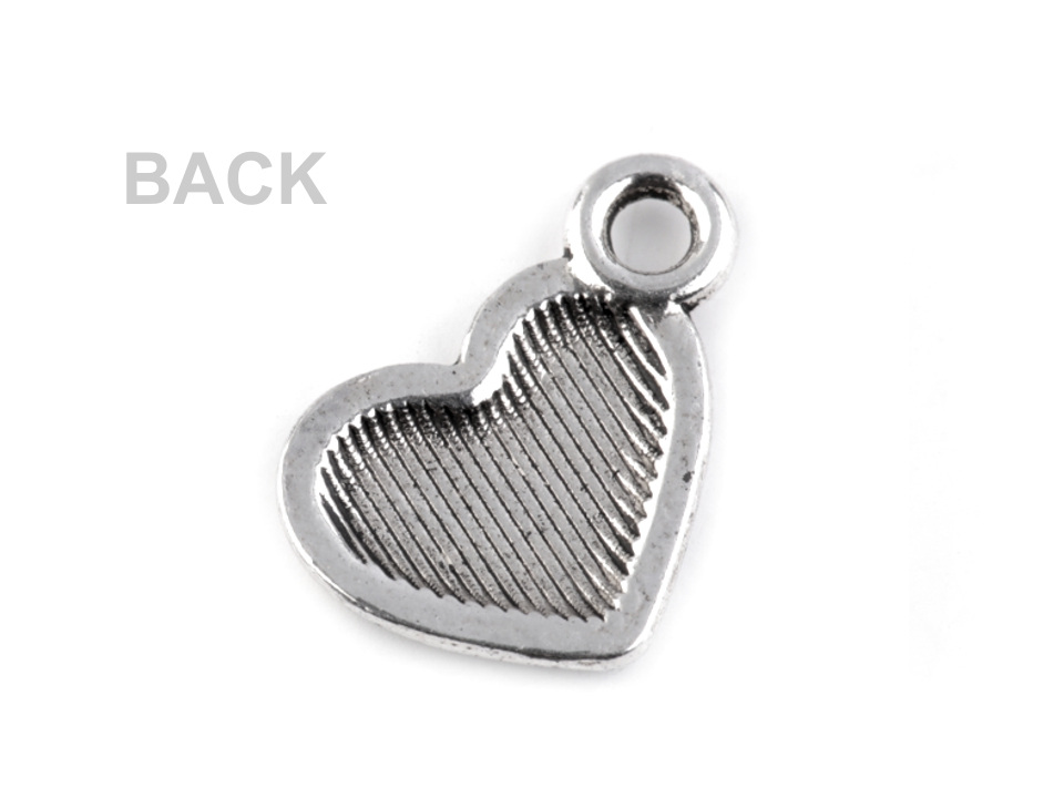 Kovový přívěsek ve tvaru srdce je vhodný především do ketlovaných šperků. Je ideální na náramky cinkáčky.