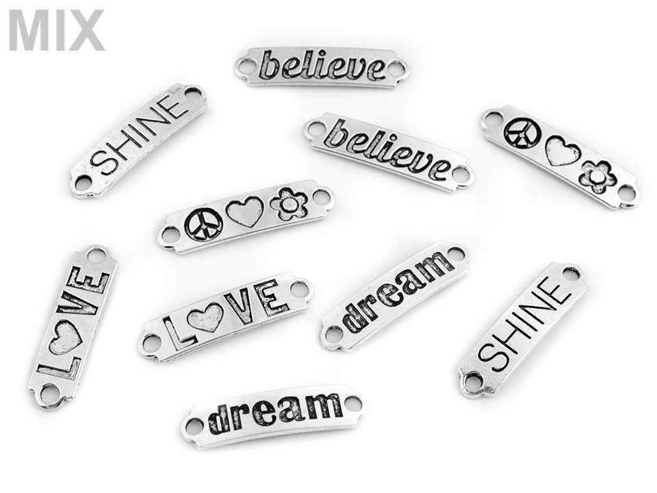 Kovová placička s nápisem je vhodná především k výrobě náramků.