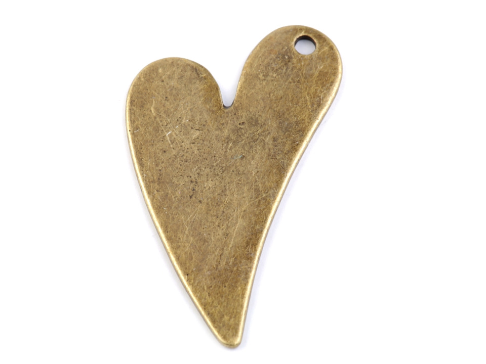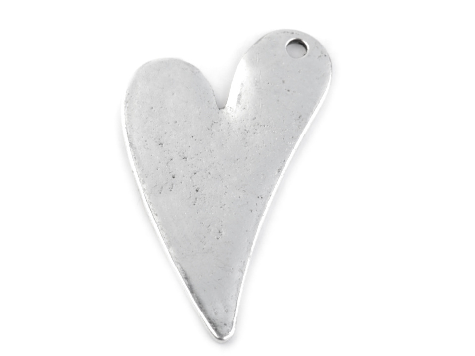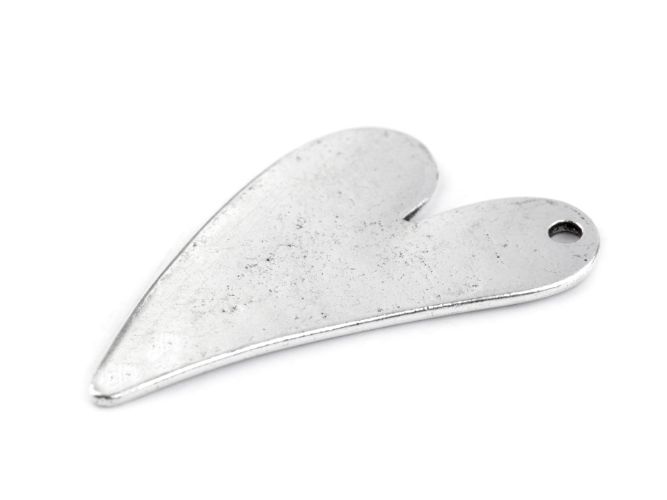 Přívěsek ve tvaru srdce je vhodný především na výrobu náhrdelníku. Zajímavě ozdobí klíče, batoh apod.