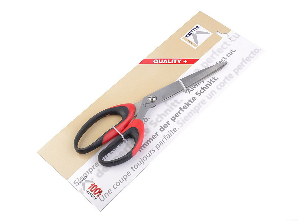 Univerzální nůžky jsou velmi kvalitní. Jejich plastová rukojeť se pohodlně drží. Využijete je ke stříhání v každé domácnosti. Můžete s nimi stříhat papír i látky.