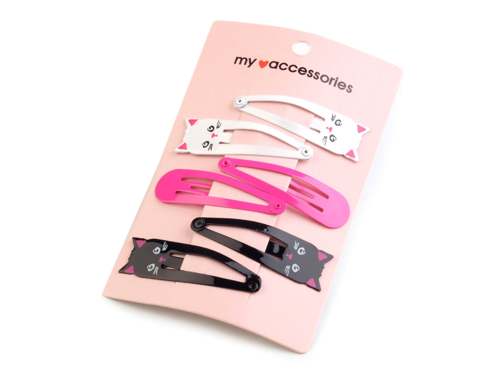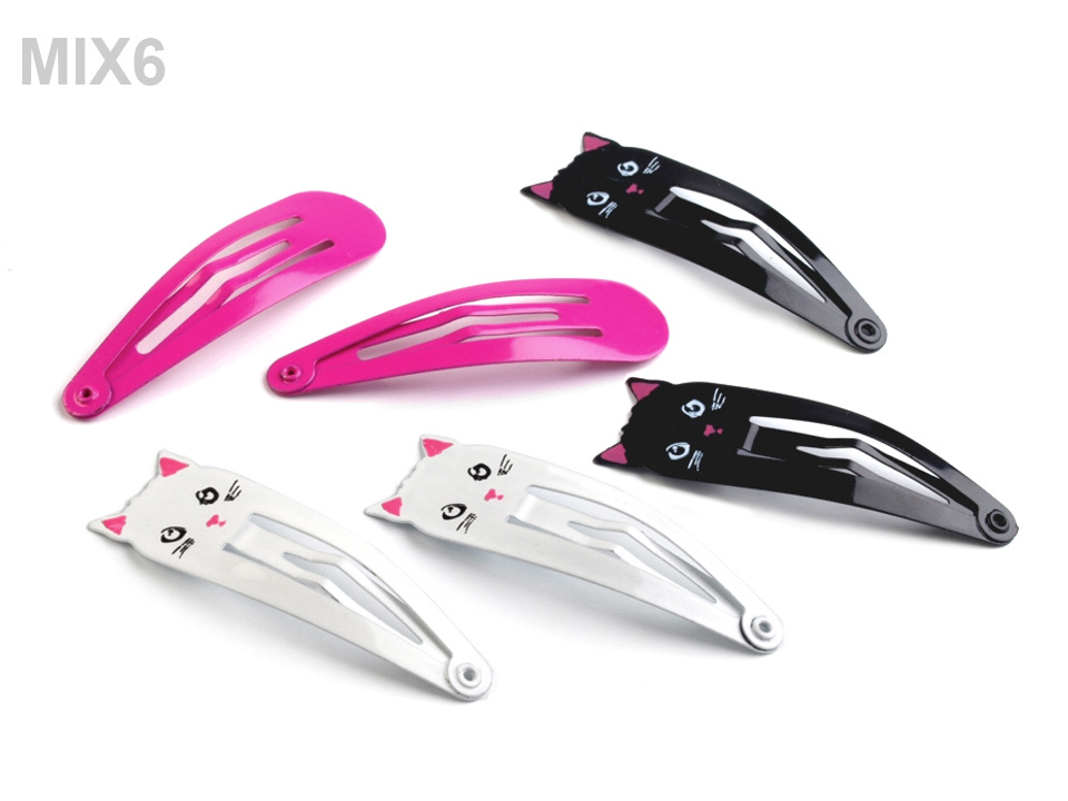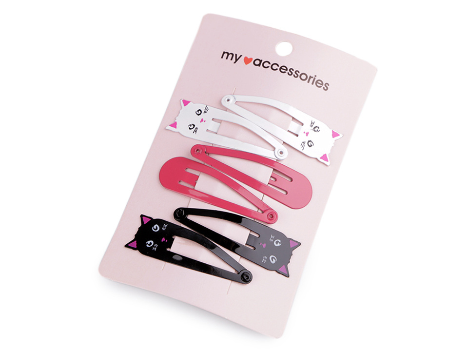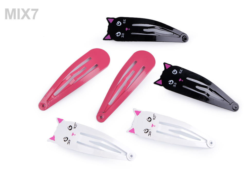Na každé kartě je 6 ks sponek po 3 párech. Mix č. 1 a 2 má 2 páry sponek s kočičím motivem.