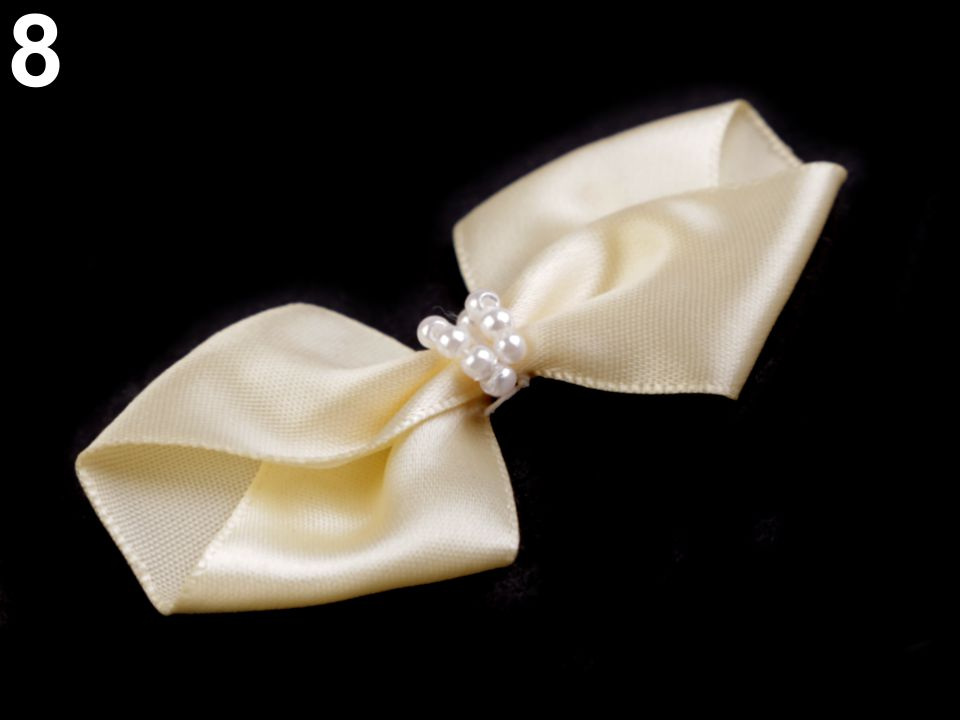 Elegantní mašličku uprostřed zdobí perličky. Saténová stuha, ze které je vyrobena jí dodává na romantickém a decentním vzhledu. Mašle je často využívána jako ozdoba čelenky či oblečení, ale můžete ji použít jako dekoraci vyrobeného přání.