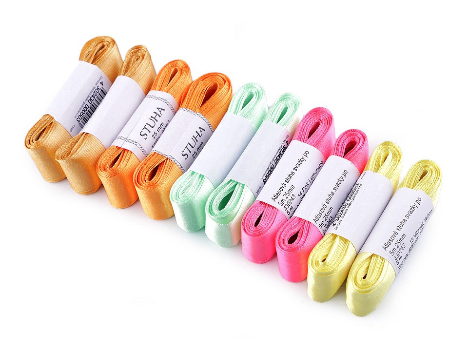 Atlasová stuha se z jedné strany působivě leskne. Je určena převážně k dekoračním účelům. Nedoporučujeme ji prát.