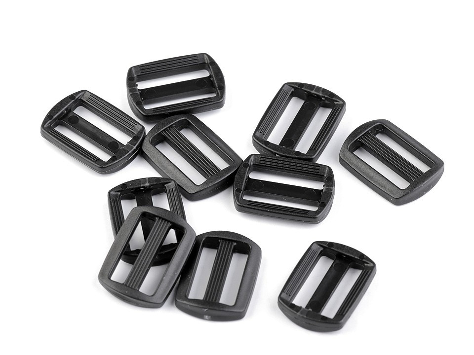 Plastový průvlek je vhodný na upravování délky popruhu k ledvinkám, menším batohům nebo kabelkám. Má tvar obdélníku.