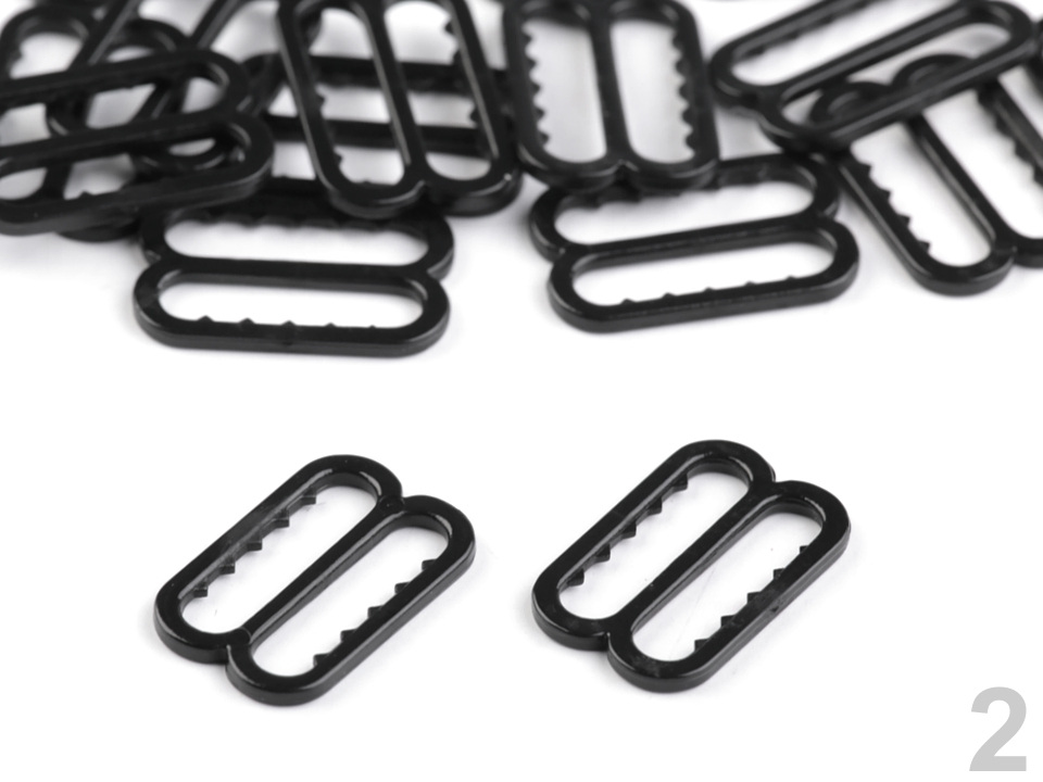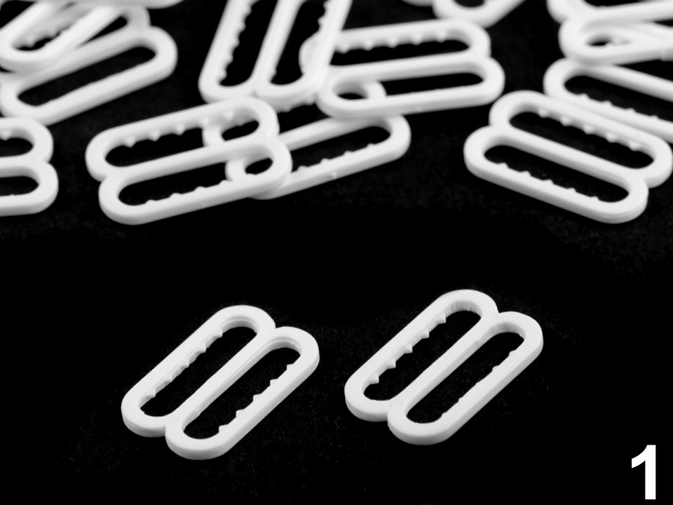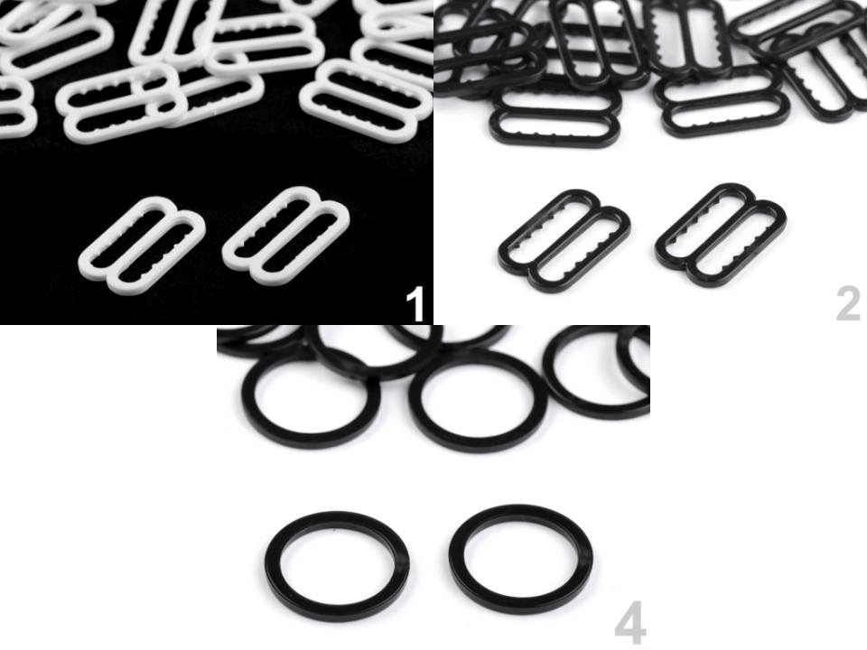 Posunovač a průvlek využijete na upravování délky ramínkových pruženek k podprsenkám, tílkům i šatům. Jsou vhodné také k výrobě podvazků.