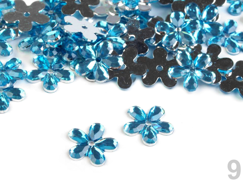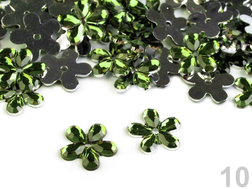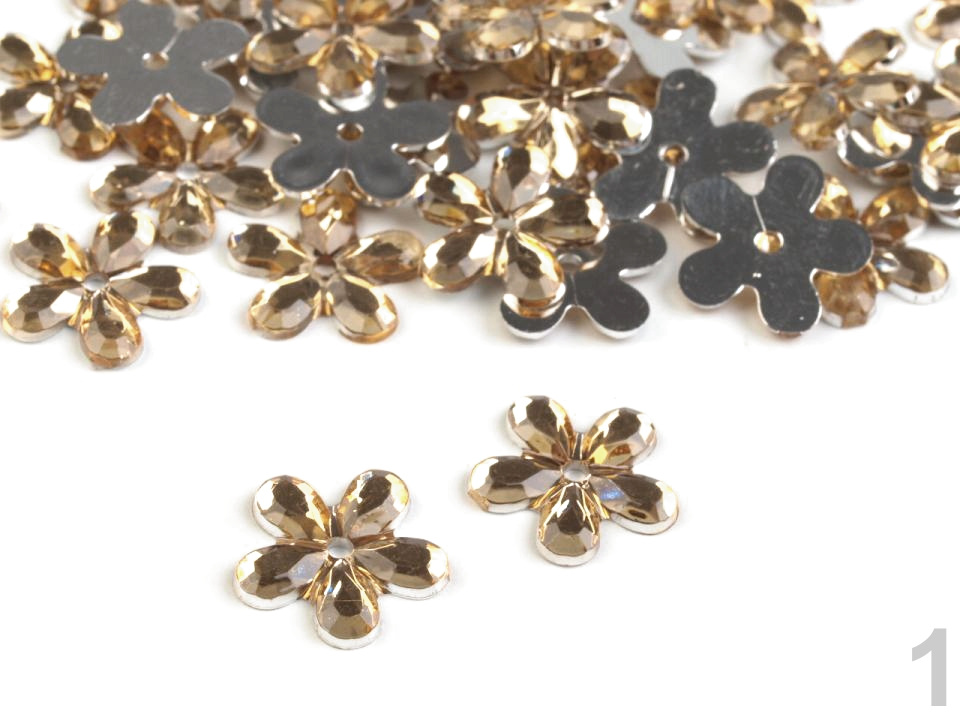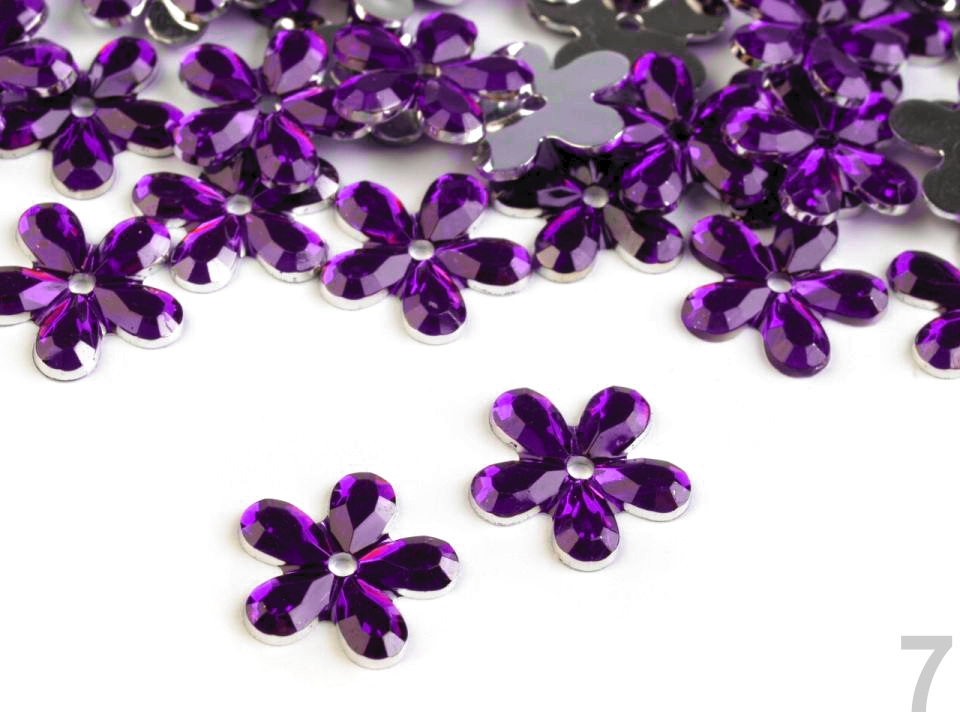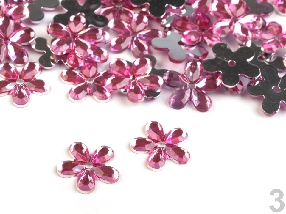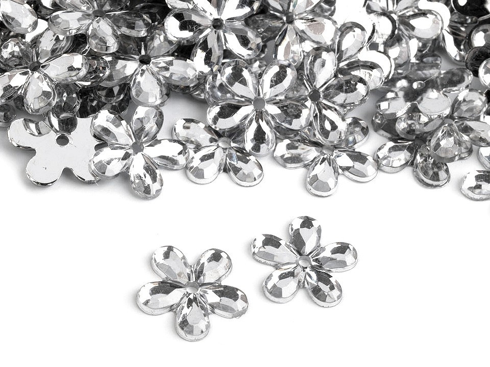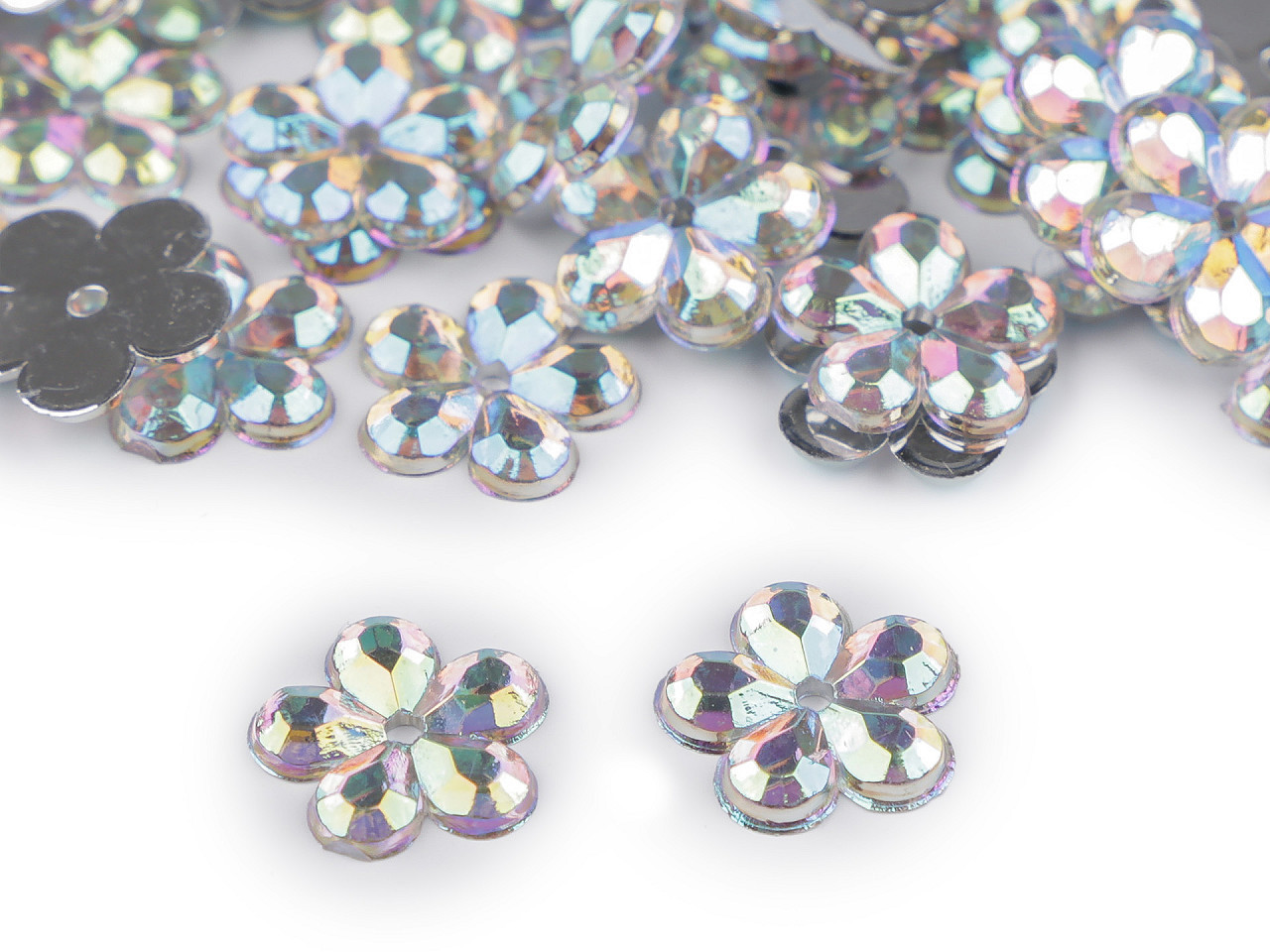 Broušené plastové květy mají mnohostranné využití. Originálně vám ozdobí oděvy i různé textilní doplňky (tašky, šály, čepice, rukavice).