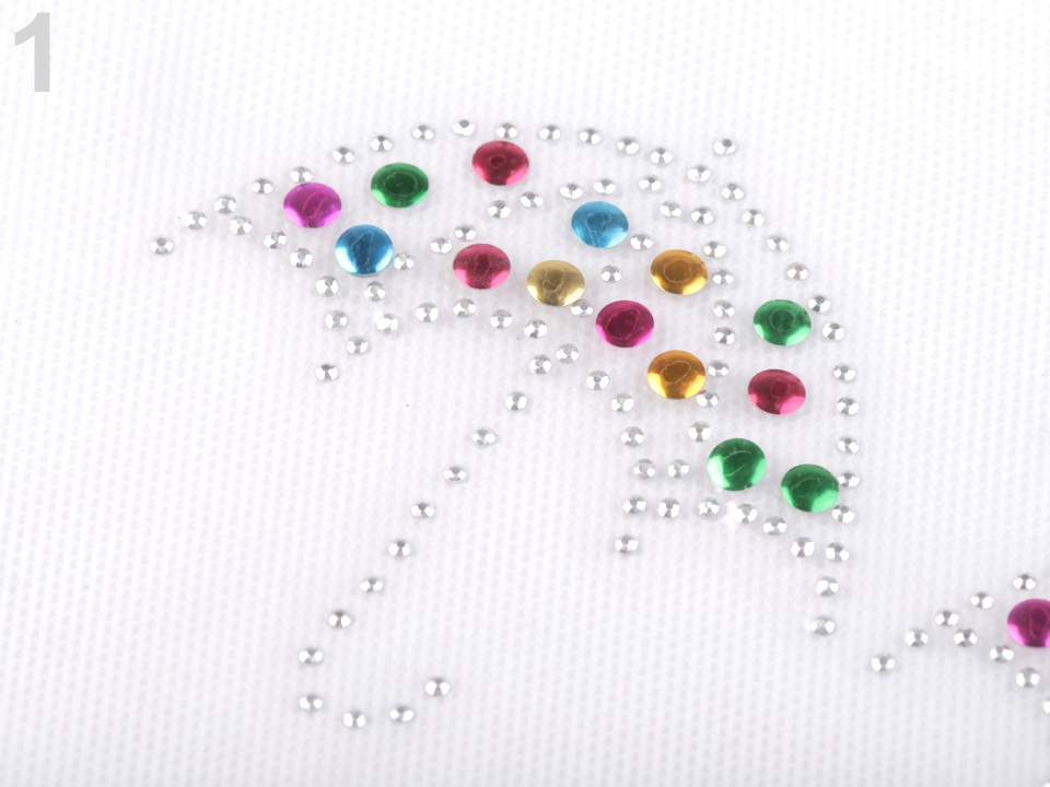 Třpytivou nažehlovací ozdobu využijete na zkrášlení triček, tašek, čepic a jiných textilních materiálů. Kamínky jsou kovové, vaše oděvy zajímavě oživí. Aplikace ozdoby je jednoduchá a rychlá. Můžete ji zkombinovat s dalšími výtvarnými technikami jako je batikování, malování, šablonování na textil apod.