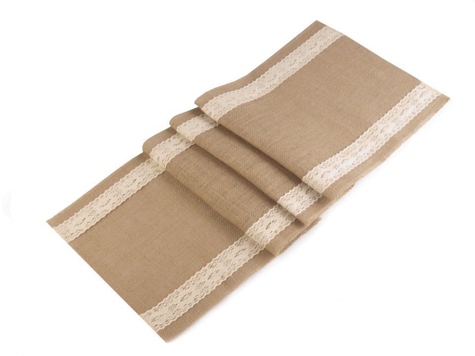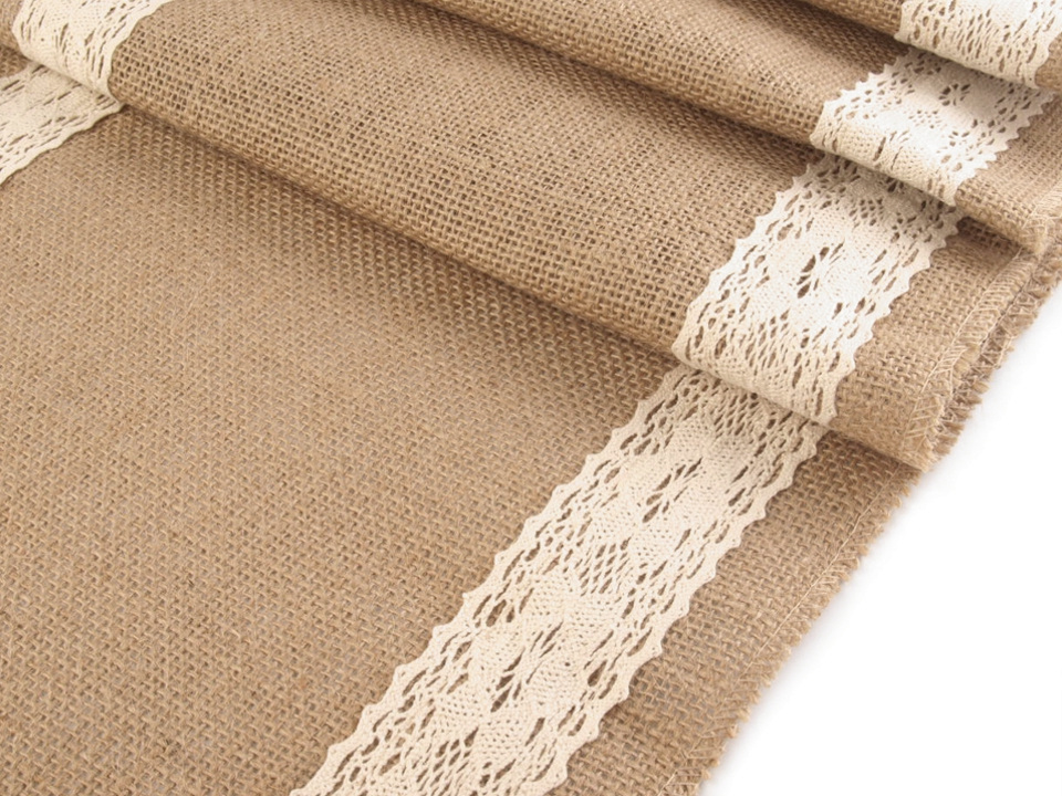 Jutový běhoun zútulní každý interiér. Zdobí ho paličkovaná krajka, která mu dodává vintage vzhled.
