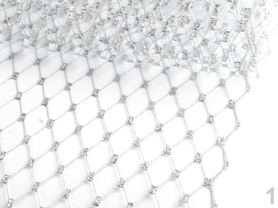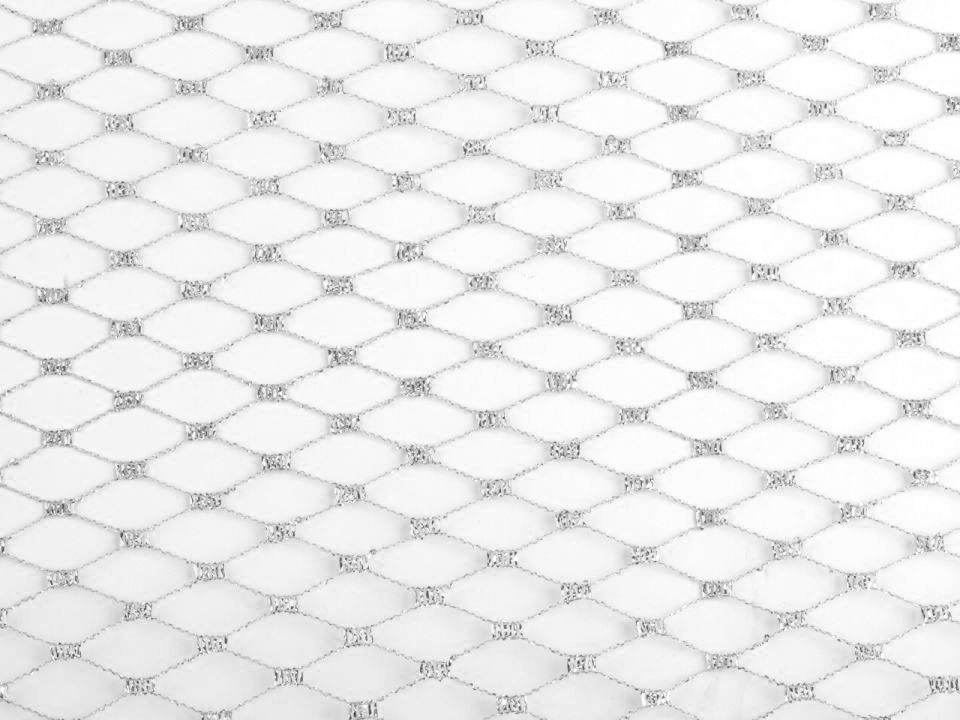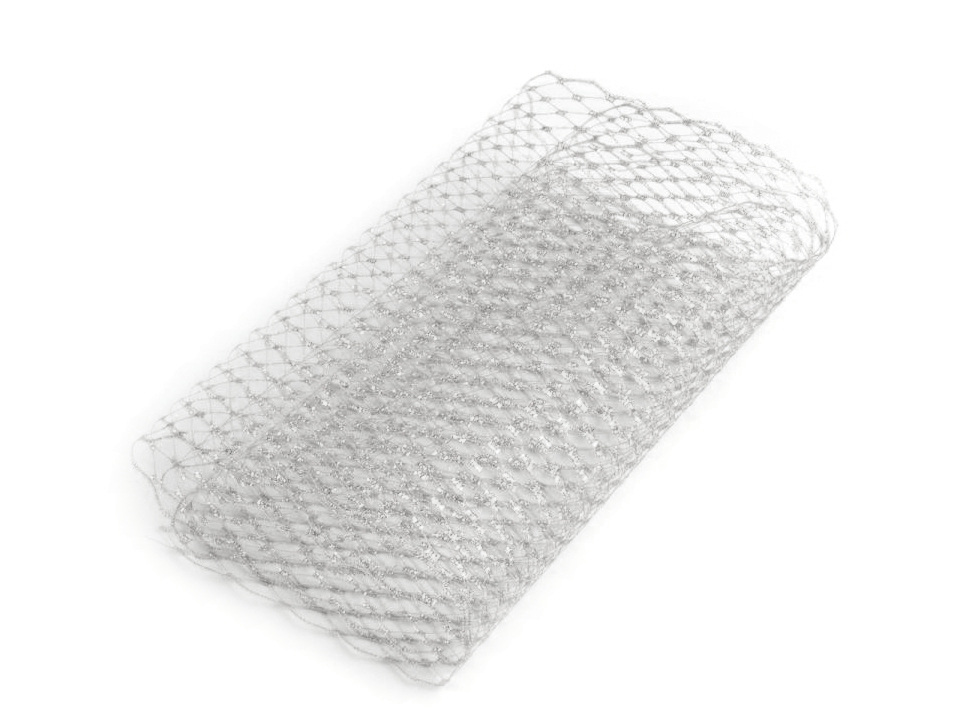 Francouzský závoj se skládá z malých oček kosočtvercového tvaru. Látka je po šíři pružná. Díky přidanému lurexu se závoj působivě třpytí.
