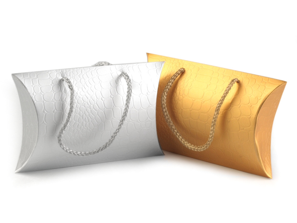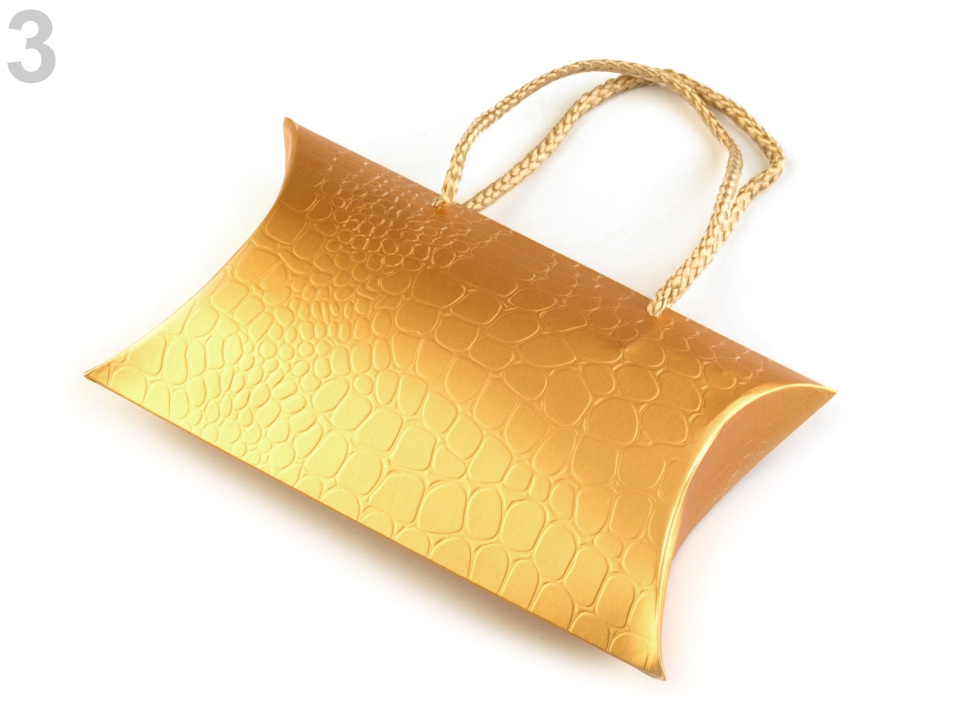 Papírová krabička "pukačka" vás okouzlí svým luxusním krokodýlím vzorem. Její metalické zabarvení působí elegantně.