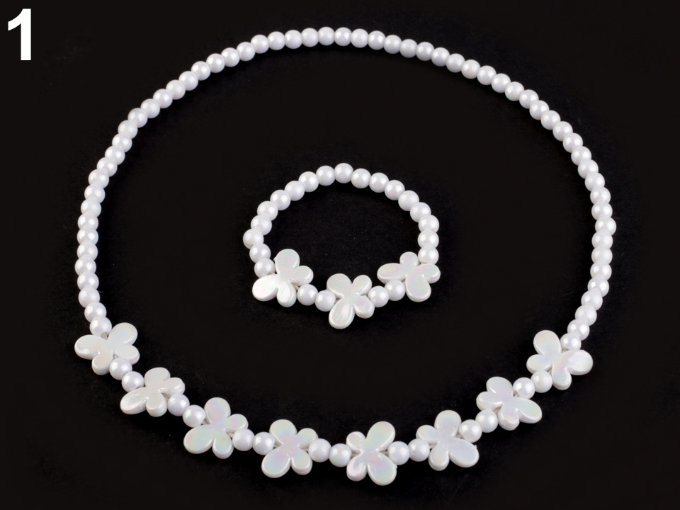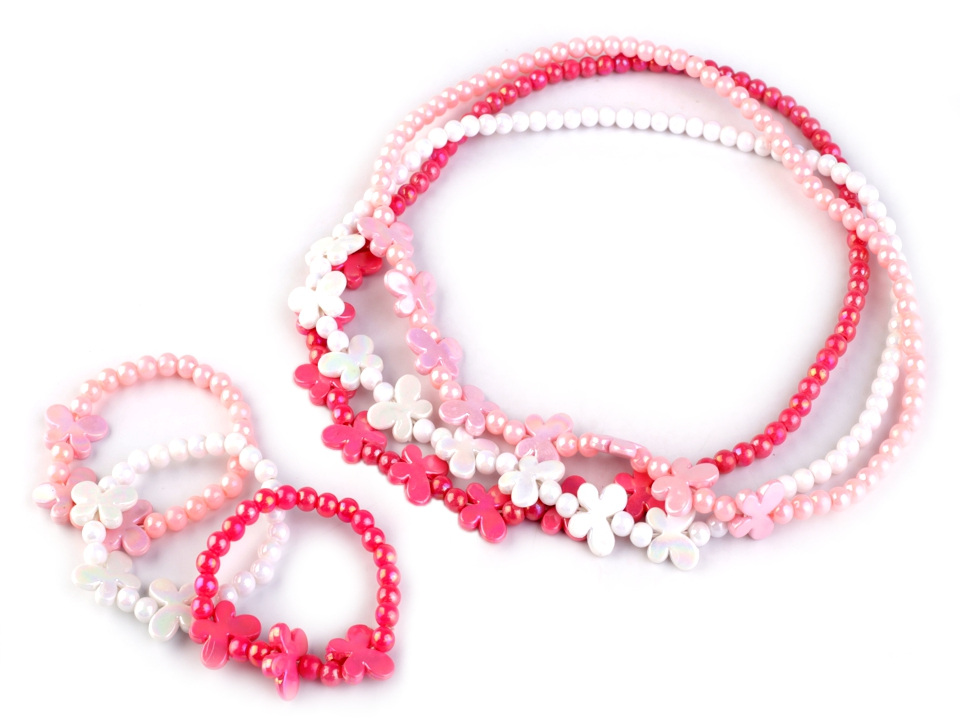 Něžná sada náhrdelníku a náramku z plastových korálků ozdobí vaší slečně šaty i obyčejné tričko.