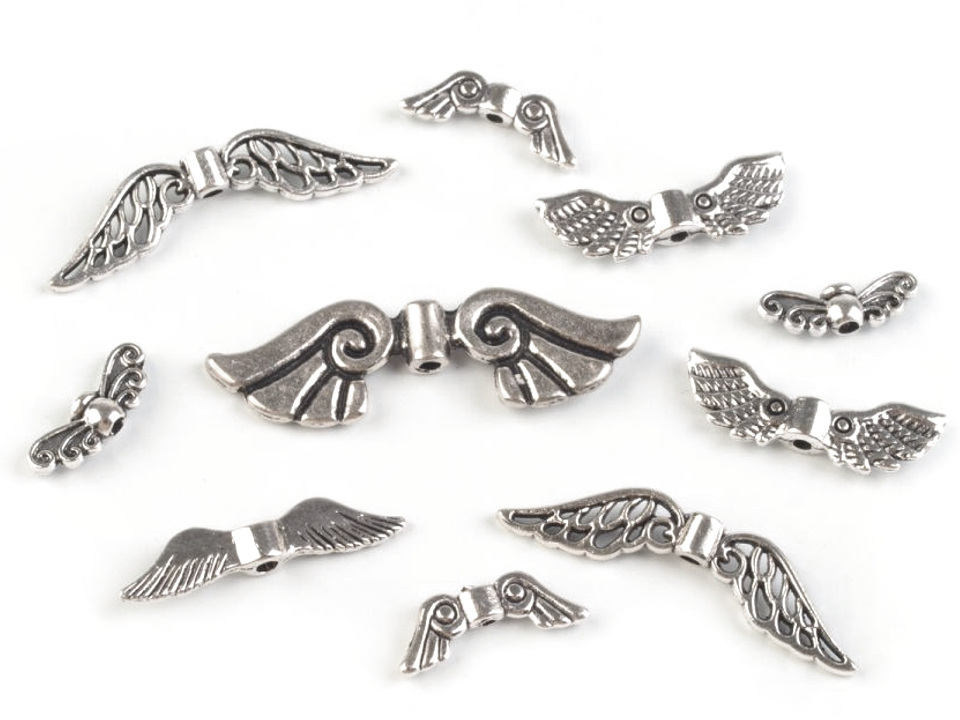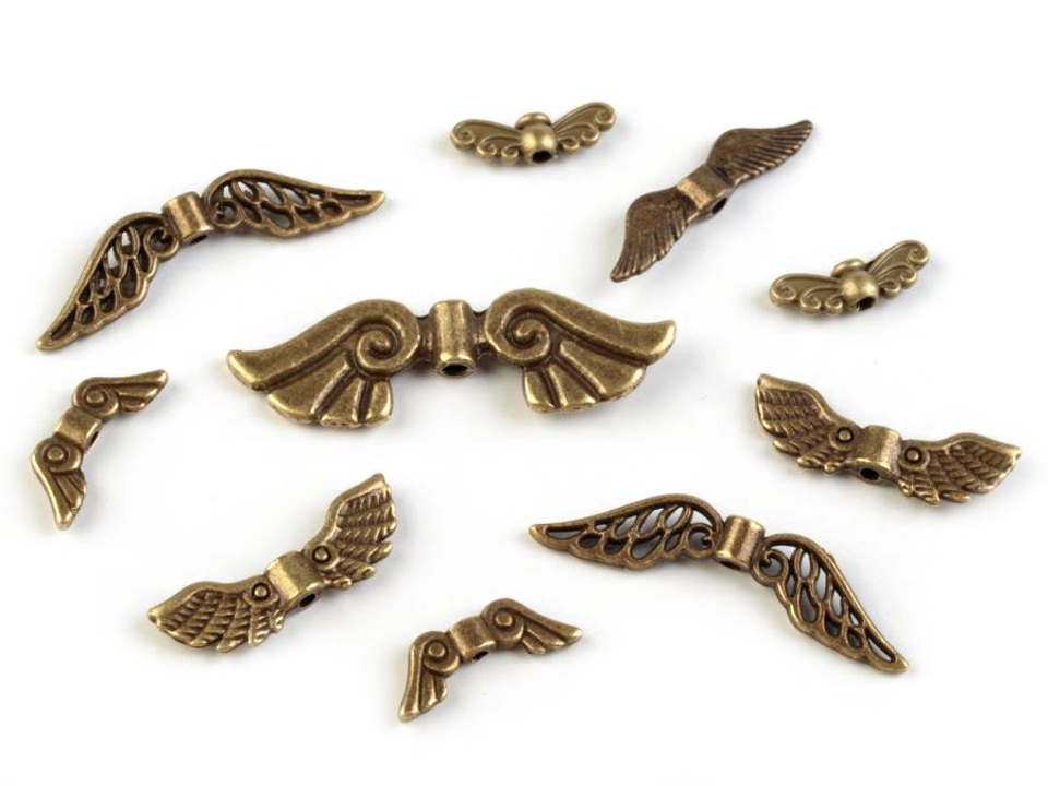 Mix křídel využijete především k výrobě ketlovaných andělíčků. Křidla jsou menší i větší, hodí se k výrobě elegantních andělských náušnic i přívěsků. S úspěchem můžete křídla používat i jako oživující prvek mezi korálky do náhrdelníků a náramků. Andělička můžete použít také jako milou pozornost pro obdarovaného. Můžete jím ozdobit dárek, přání apod.