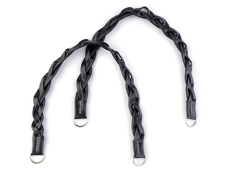Stylová ucha na tašky a kabelky jsou propletená do působivého copu. Na obou koncích mají kovové polokroužky, díky kterým se jednoduše připevní na hotovou tašku.