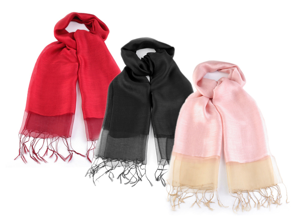 Dvojitý dámský šátek z pravého hedvábí potěší ženy, které vyhledávají luxusní a zajímavé kousky do svého šatníku.
