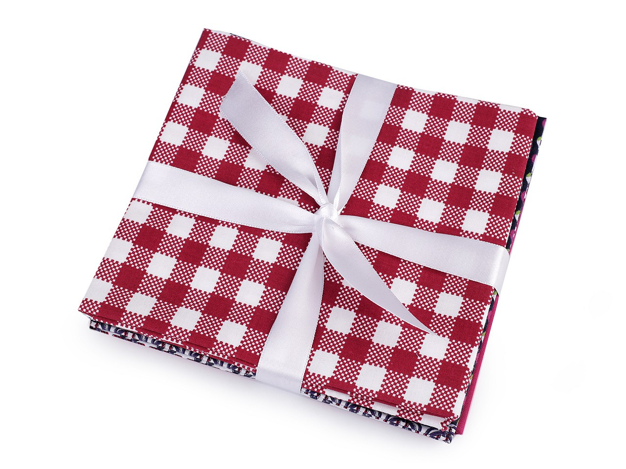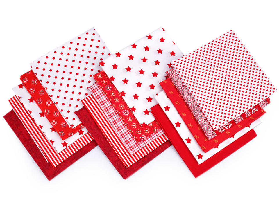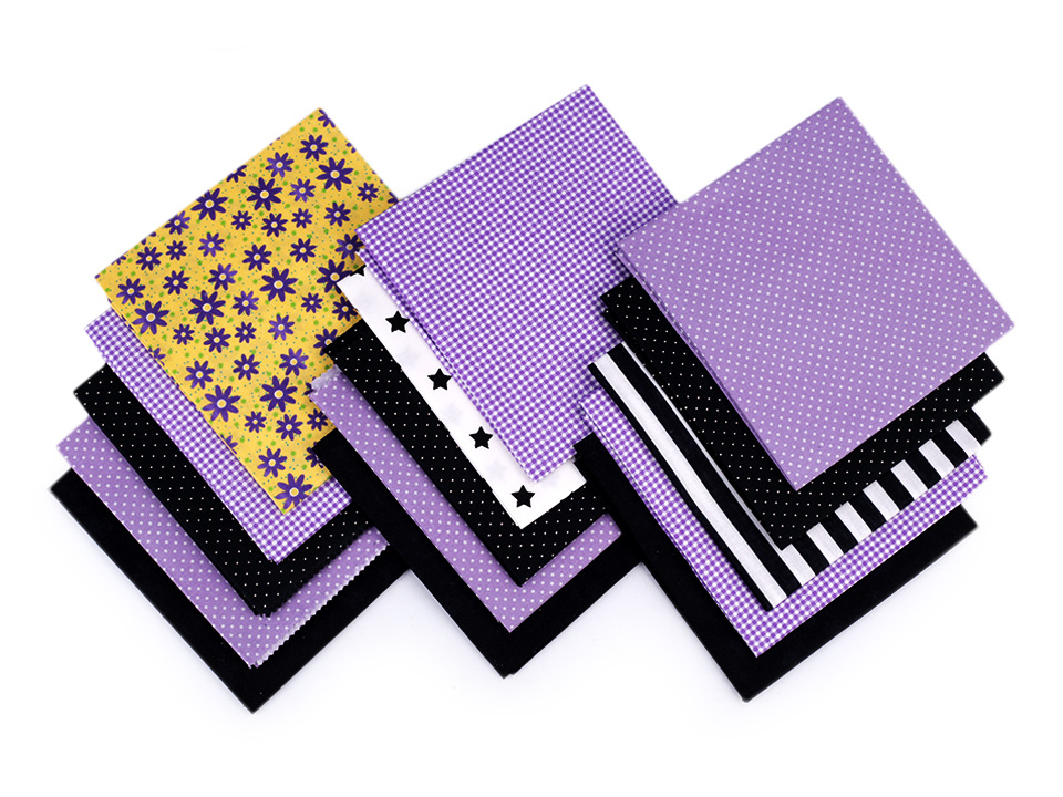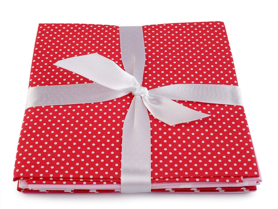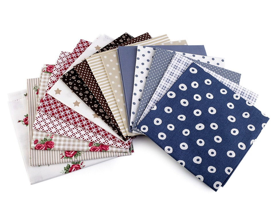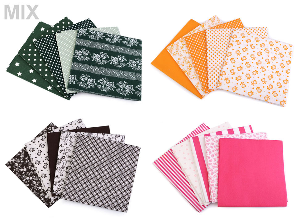 Sada barevných látek je skvělá na patchwork. Najdete mezi nimi květinové vzory, puntíky, proužky, hvězdy, káro - vybere si každý. Látky v sadách barevně ladí. Každá sada je elegantně převázaná saténovou mašlí.
