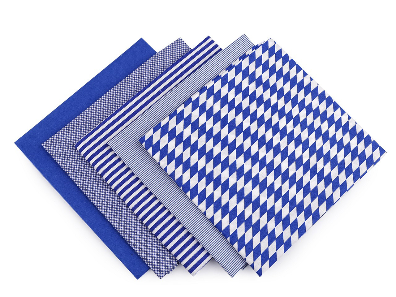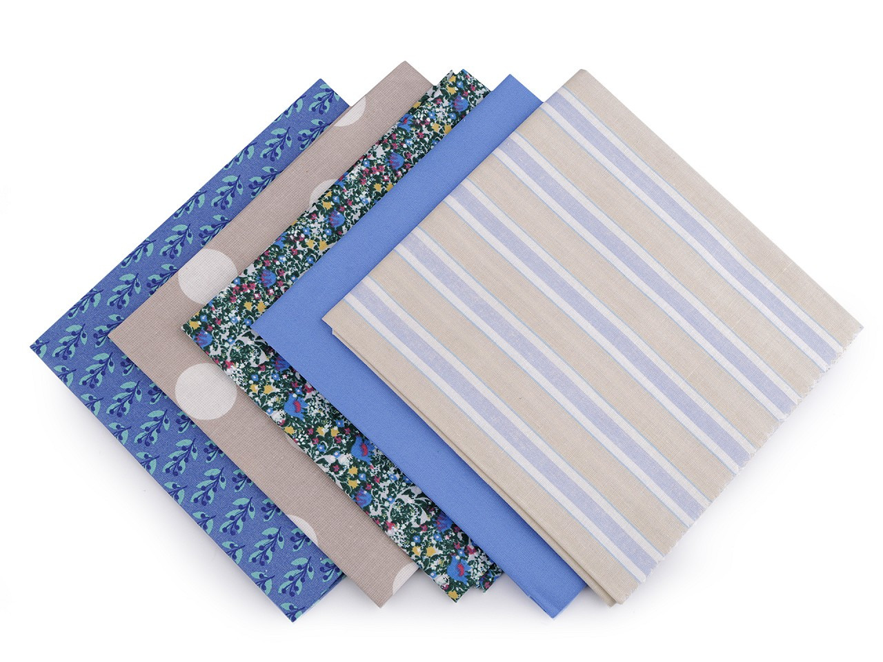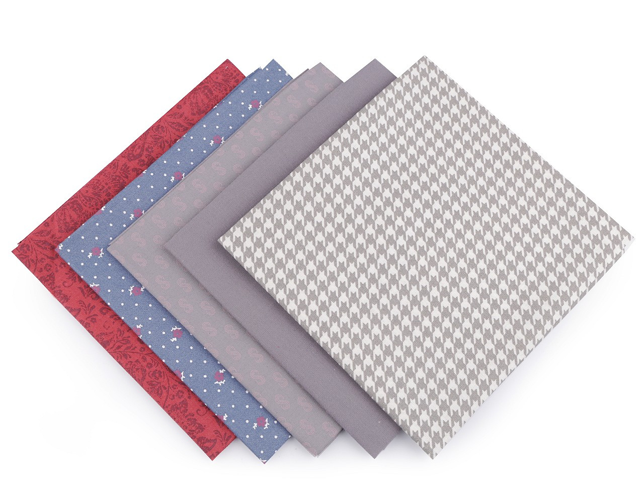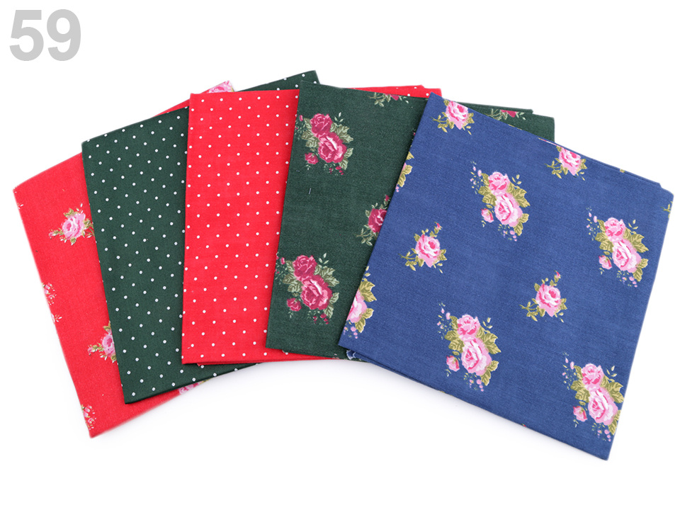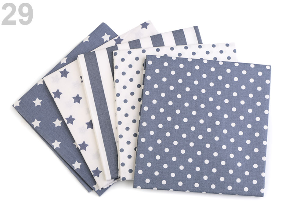 Sada barevných látek je skvělá na patchwork. Najdete mezi nimi květinové vzory, puntíky, proužky, hvězdy, káro - vybere si každý. Látky v sadách barevně ladí. Každá sada je elegantně převázaná saténovou mašlí.