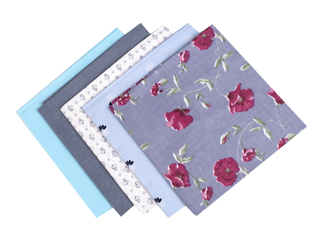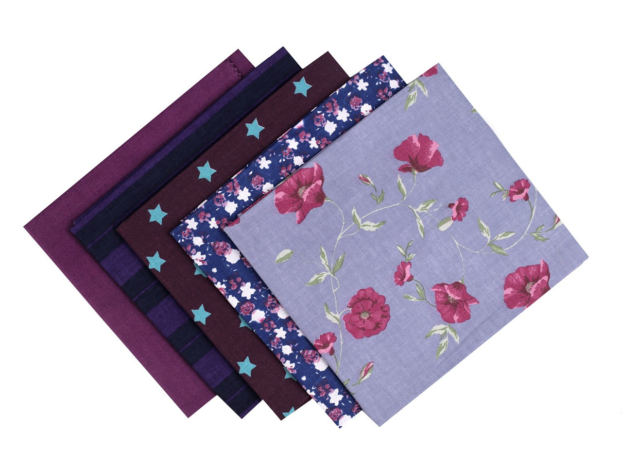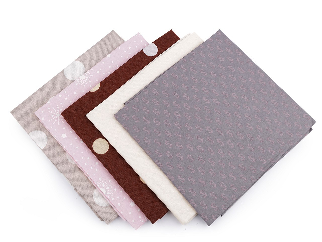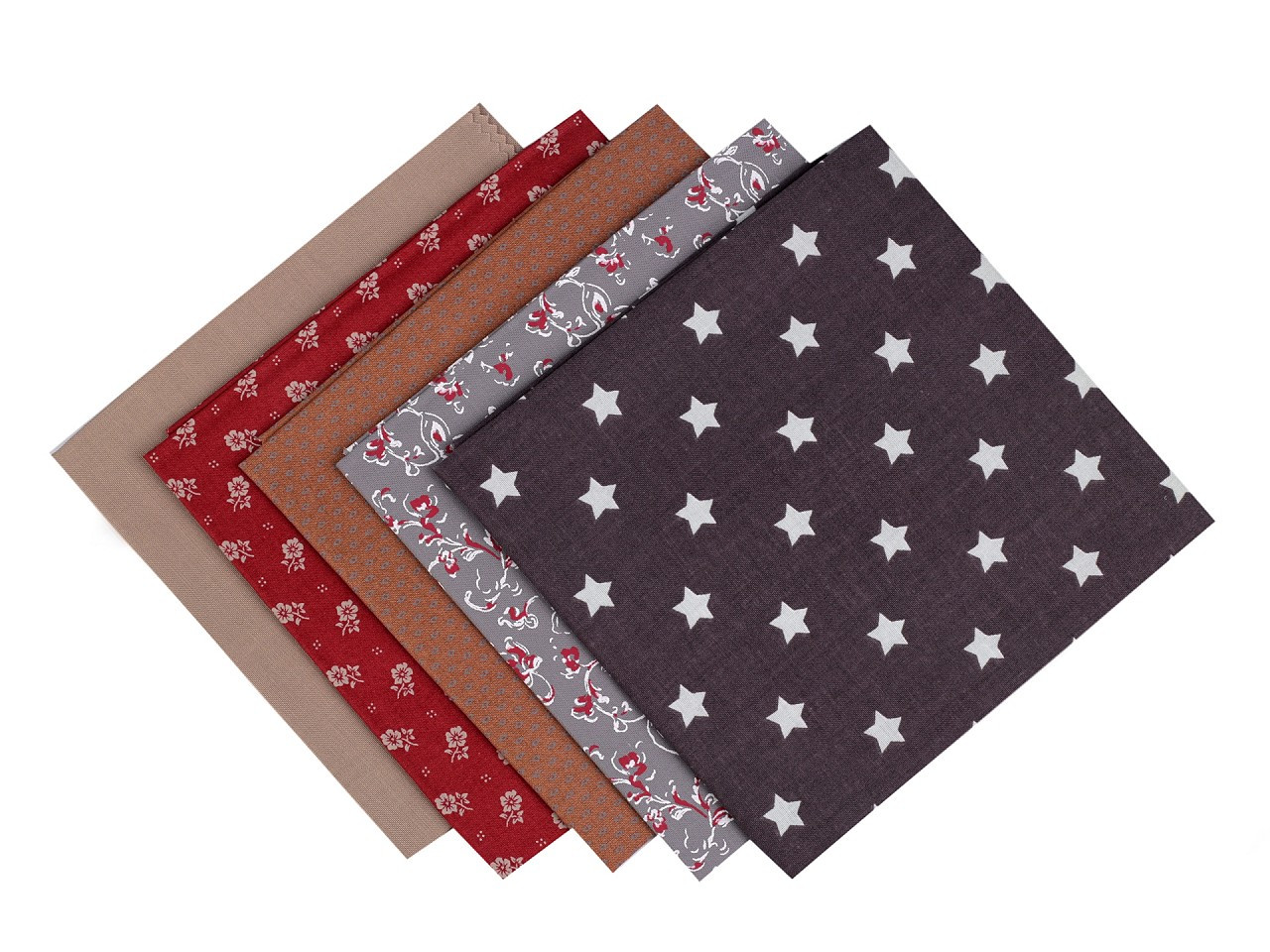 Sada barevných látek je skvělá na patchwork. Najdete mezi nimi květinové vzory, puntíky, proužky, hvězdy, káro - vybere si každý. Látky v sadách barevně ladí. Každá sada je elegantně převázaná saténovou mašlí.