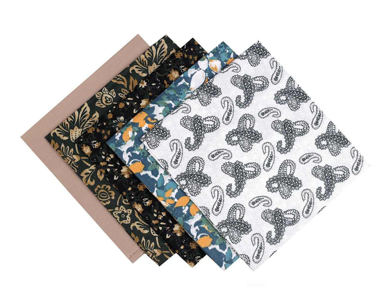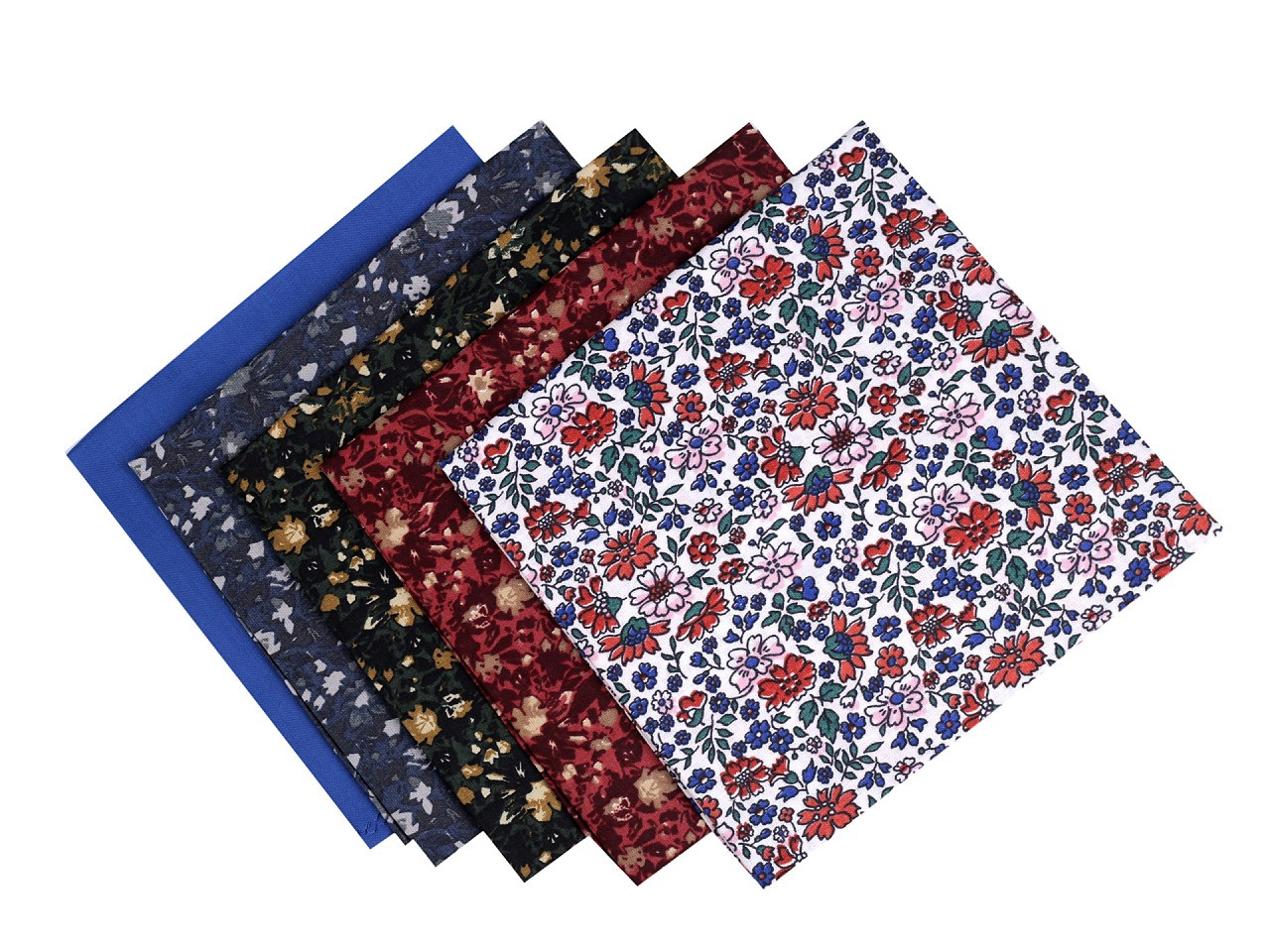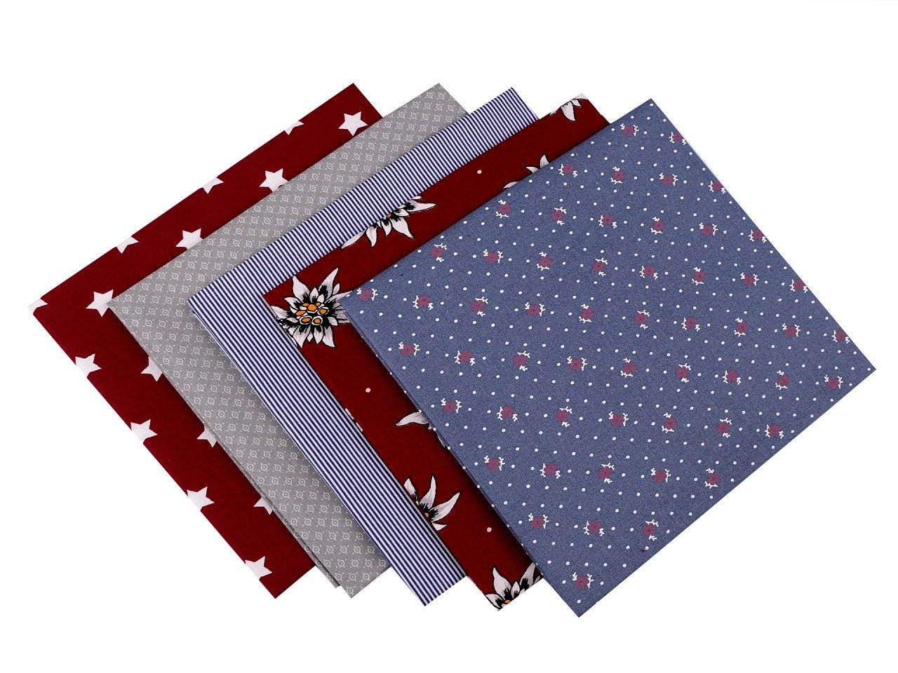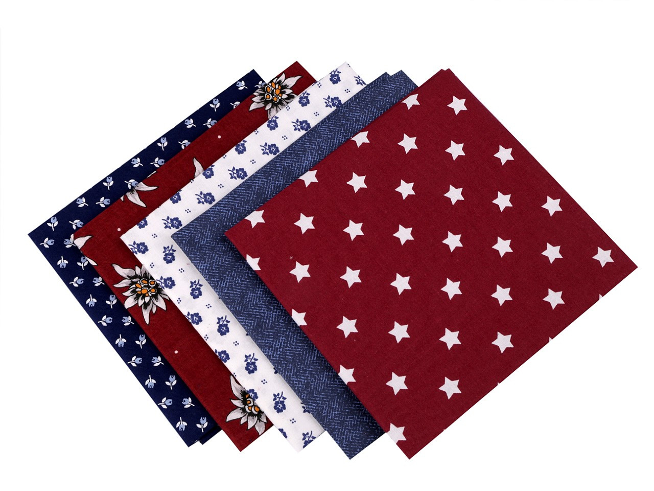 Sada barevných látek je skvělá na patchwork. Najdete mezi nimi květinové vzory, puntíky, proužky, hvězdy, káro - vybere si každý. Látky v sadách barevně ladí. Každá sada je elegantně převázaná saténovou mašlí.