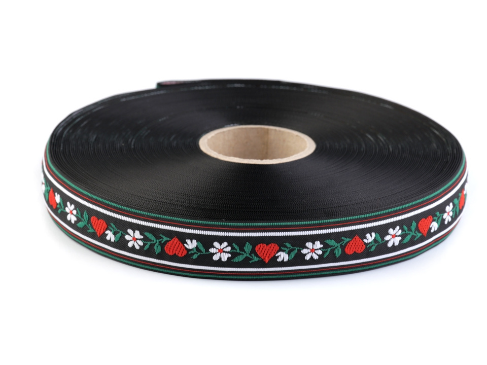 Krojovou vzorovku zdobí působivý vzor s květy, které doplňují srdíčka. Vzorovka je tkaná na jehlových stavech.